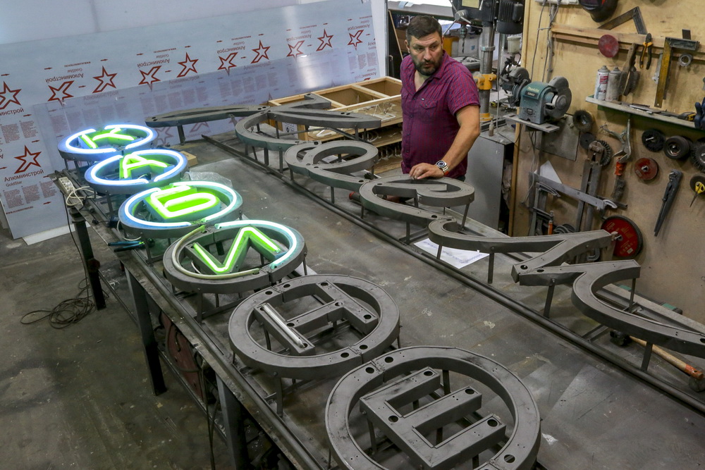 «Мы не стали менять стеклянные трубки на новый гибкий неон из диодов, потому что если реставрировать, то делать как было, а не создавать имитацию», — поясняет Любим Любаев.