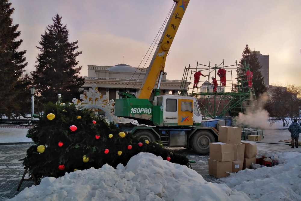 Главную ёлку Новосибирска начали монтировать в Театральном сквере