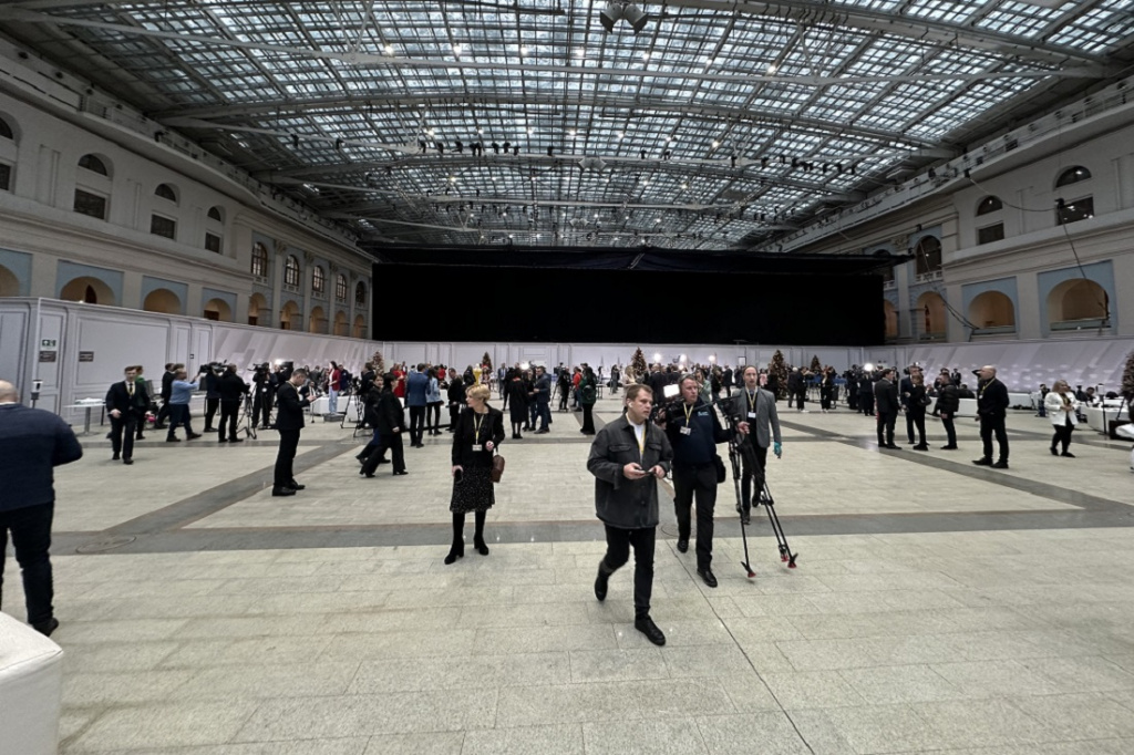 «Группа телевидения уже работает: пишут стендапы, рассказывают о том, как долго мы сюда проходили, сдавали ПЦР-тесты: допустили только тех, у кого был отрицательный результат по ковиду и гриппу. До начала пресс-конференции остаётся меньше двух часов. А мы пошли пить горячий чай, потому что дико замёрзли в очереди», — рассказал Иван Проскурин.