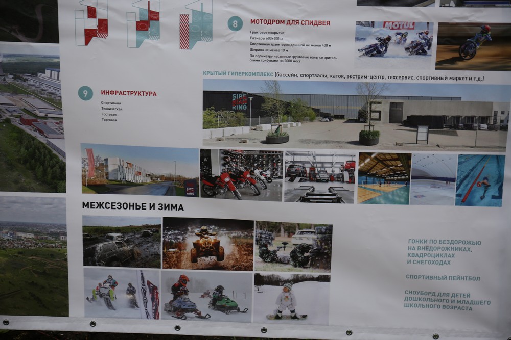 «Мы разработали концепцию — наши архитекторы вместе со спортсменами из федерации мотоспорта. Презентовали её мэру, чтобы приступить к реализации этого проекта. Проект ёмкий, в том числе и финансово. Будем искать взаимодействия с инвесторами», — рассказывает заместитель мэра Новосибирска Анна Терешкова.