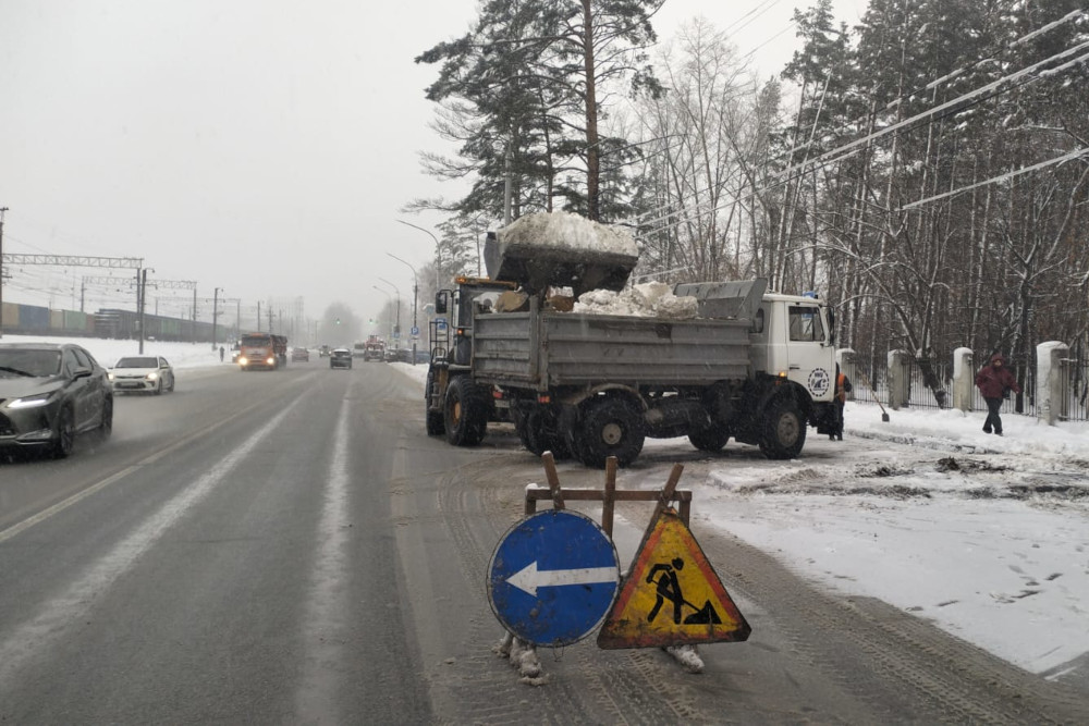 В Калининском районе вывозят снег с Гребенщикова, подметают и обрабатывают противогололёдными смесями улицы в Родниках и Снегирях. Чистят тротуары на Александра Невского, Бардина, Народной, 25 лет Октября, Новоуральской, Магистральной, Фадеева и других.