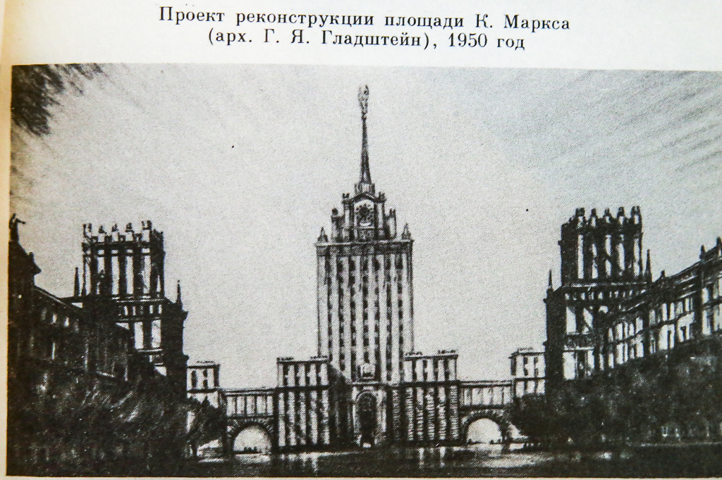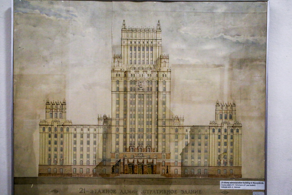 Вместе с тем сохранились проекты, в которых на месте научно-технической библиотеки расположена самая большая сталинская высотка, аналогичная зданию МГУ на Воробьёвых горах. «Даже осознать сложно, насколько это здание колоссальное», — говорит Сергей Филонов.