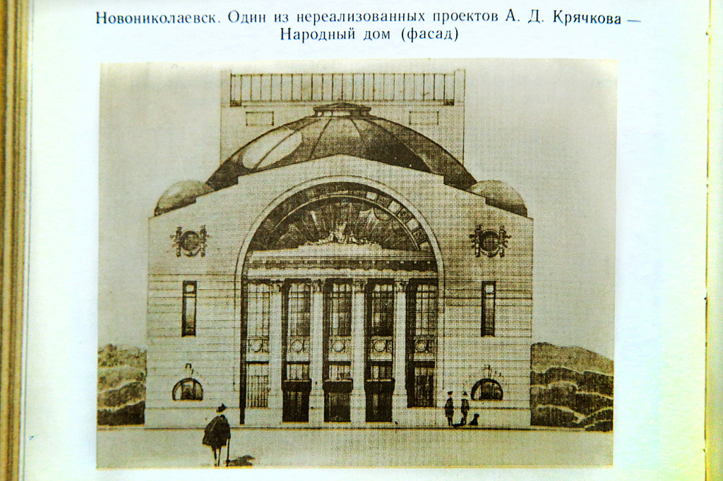 Точкой отсчёта в проектировании крупных зданий в Ново-Николаевске стал 1906 год. До этого наш город представлял собой большую деревню. Самый интересный дореволюционный нереализованный объект — это «Народный дом». Проект для него в 1911 году разработал Андрей Крячков. Здание планировали построить в квартале между улицами Свердлова, Советской и Красным проспектом.