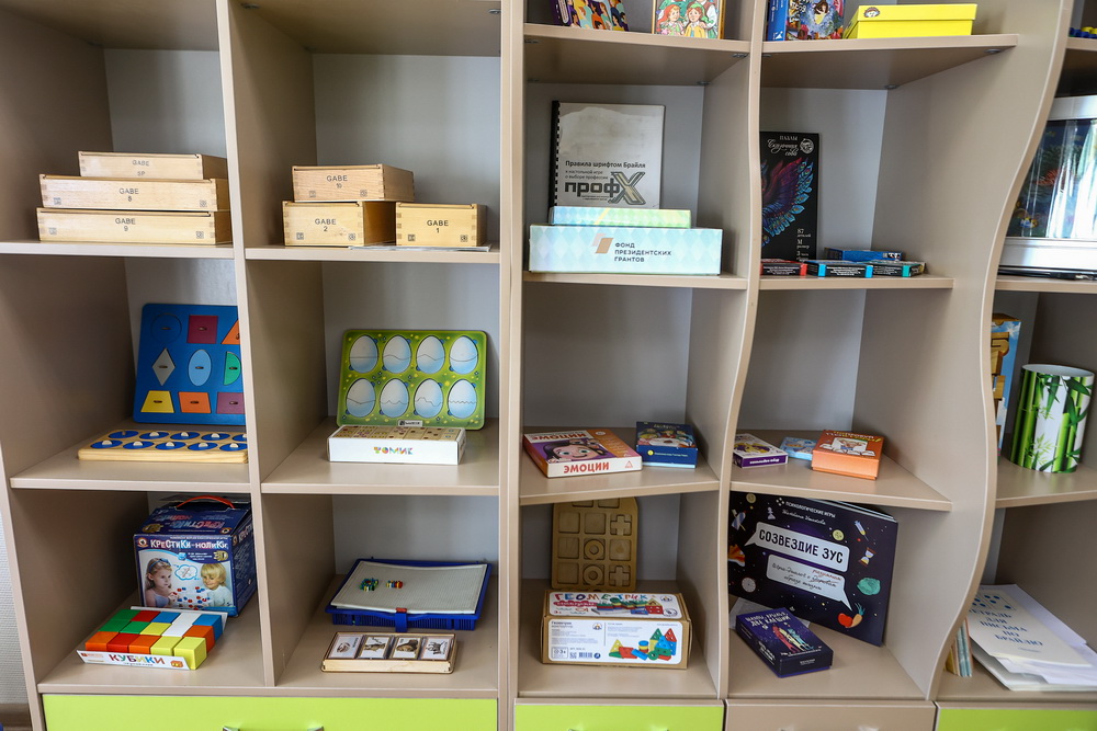 «До проекта „Доброшкола“ у нас были разные наборы для обучения, но сейчас возможностей больше, и ещё не всё опробовали, хватит на долгие годы. Дети очень любят новый набор с мозаикой — особенно те, кто учится про шрифту Брайля. Изучаем прямые линии, диагональ, чтобы они потом могли понимать направления шрифта, ориентироваться в пространстве», — комментирует психолог Анастасия Галиякбарова.