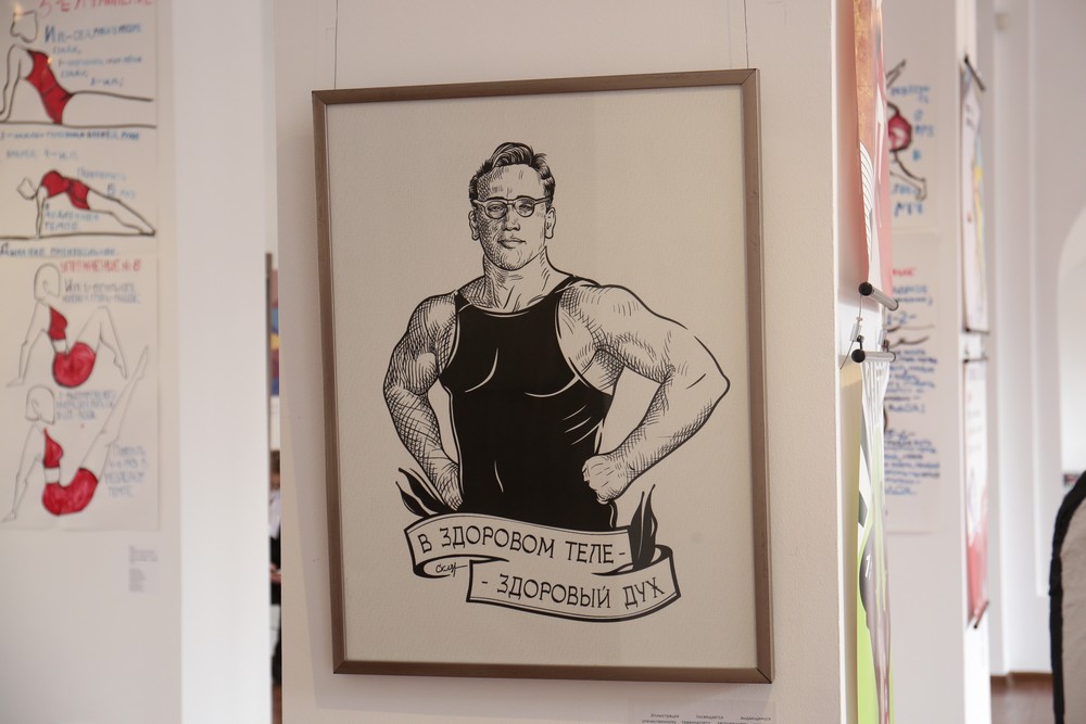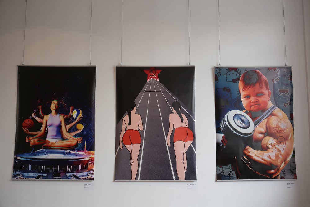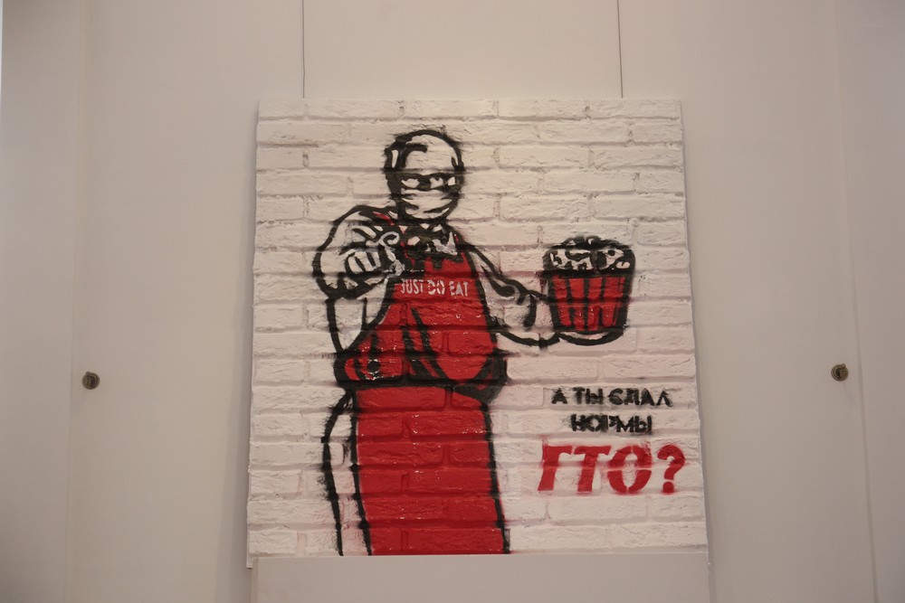 Что такое ГТО сегодня — один из главных вопросов выставки. Это больше не советское милитаристское «Готов к труду и обороне». Авторы предлагают новые взгляды, в том числе и шутливые: «где твои очки» или «готовь телегу осенью», а ещё нежные — «готов тебя обнять».