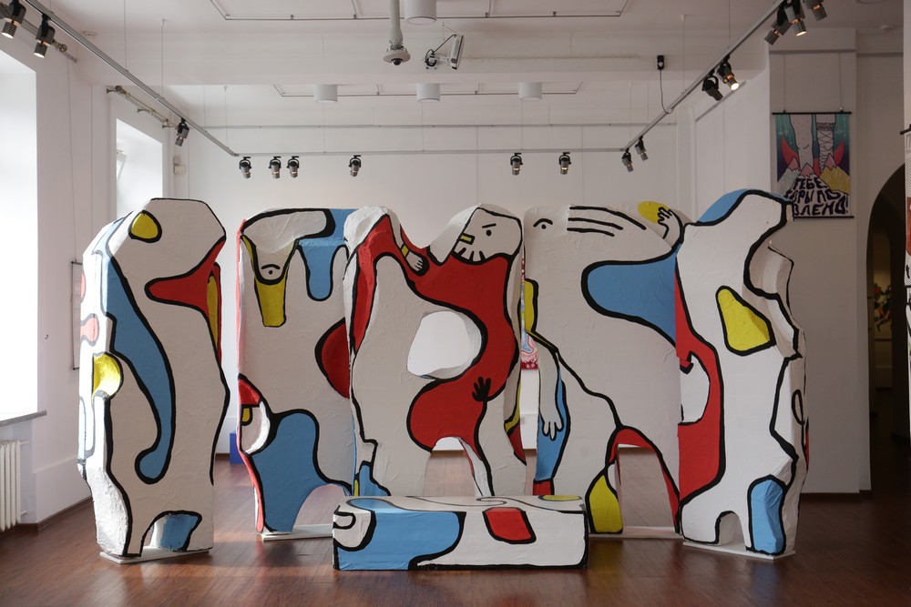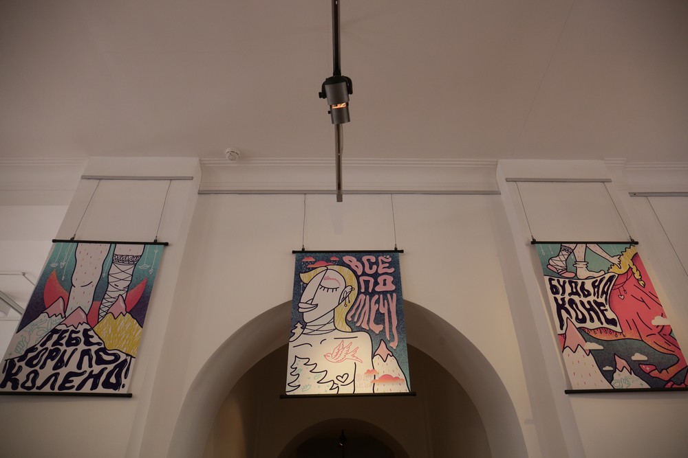 Больше 60 картин, графических плакатов, видеоинсталляций и перформансов — четыре зала ЦК19 занимают работы молодых дизайнеров. Свои произведения они готовили специально к выставке. В День смеха её отрыли не случайно. По словам кураторов, сюда нужно приходить только в хорошем настроении.