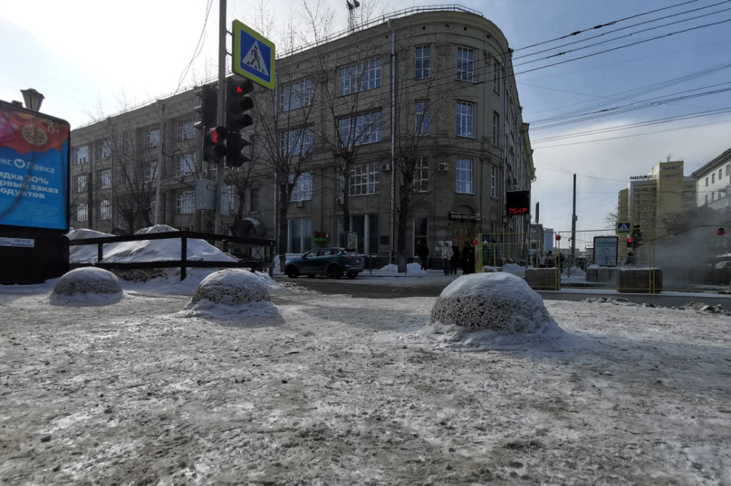 Три каменные полусферы установили в преддверии Нового года на пересечении Советской и пешеходного участка улицы Ленина рядом с гостиницей «Центральная». Однако после открытия проезда мешающие прохожим препятствия не убрали. Новосибирцы обратились с жалобами в мэрию.