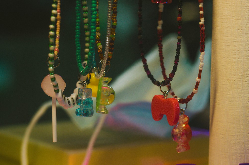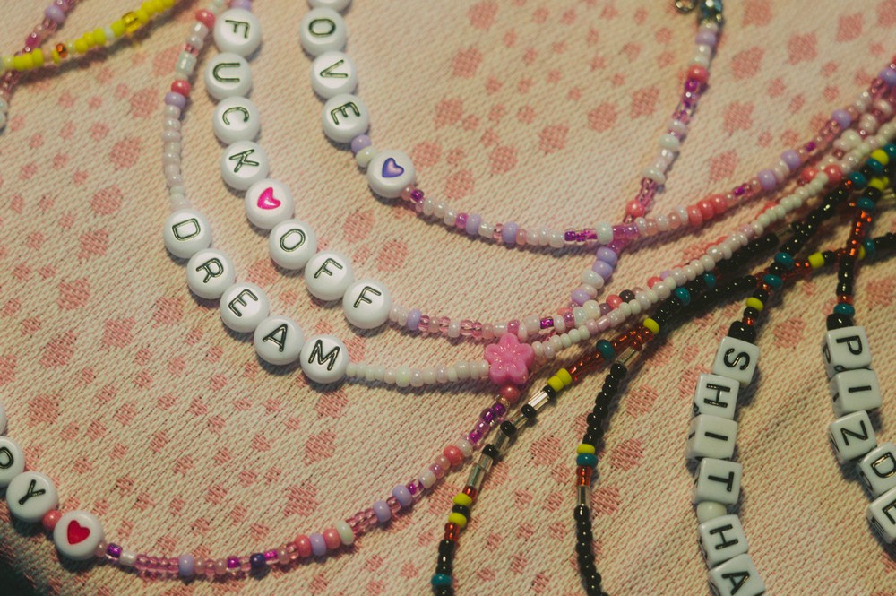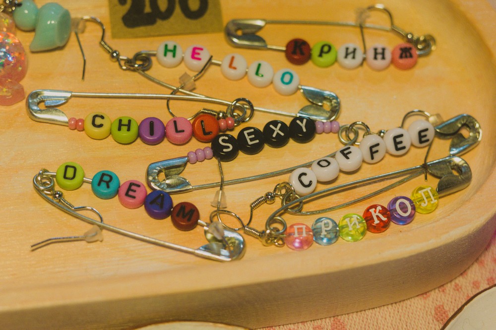 — На самом деле я не очень люблю долго сидеть выдумывать дизайны. Люблю просто насыпать цвета, которые сочетаются между собой, и просто абсолютно рандомно их нанизывать — и в 100% случаев мне нравится. Получается, что одинакового вообще как будто не может произойти. Могут повторяться надписи, но при этом украшения не получаются идентичными.