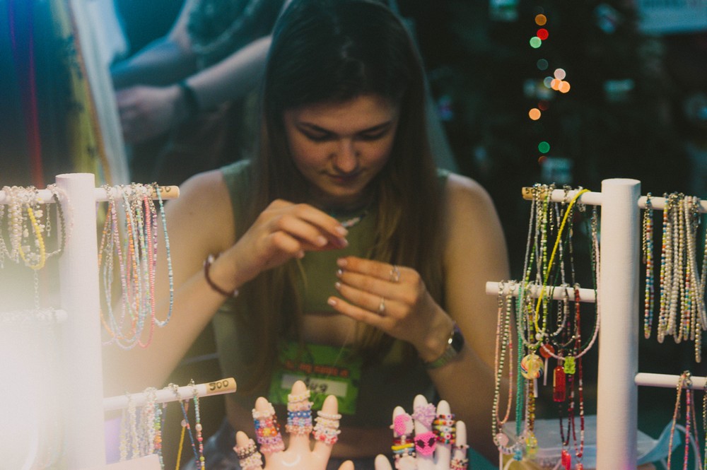 На «Гаражке» я, по-моему, ещё ни разу нормально не заработала, учитывая, что стоять надо два дня по 12 часов. Но такой кайф общаться с людьми! Оба раза, что я участвовала в «Гаражке», я делала украшения прям там. Например, люди приходят, говорят: «О, прикольно, только я хочу другую надпись». Без проблем, через 30 минут приходи забирай.