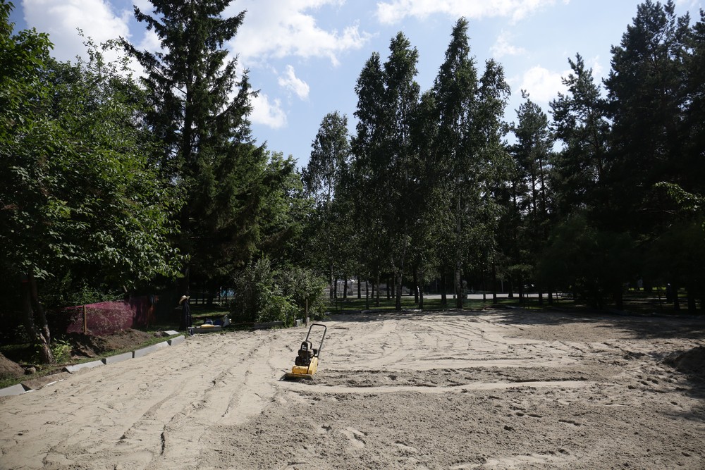 Сейчас на месте старой песочницы в Нарымском сквере лежит гора песка. Здесь будет детская игровая площадка. Посетители сквера давно мечтали о новых качелях и горках.