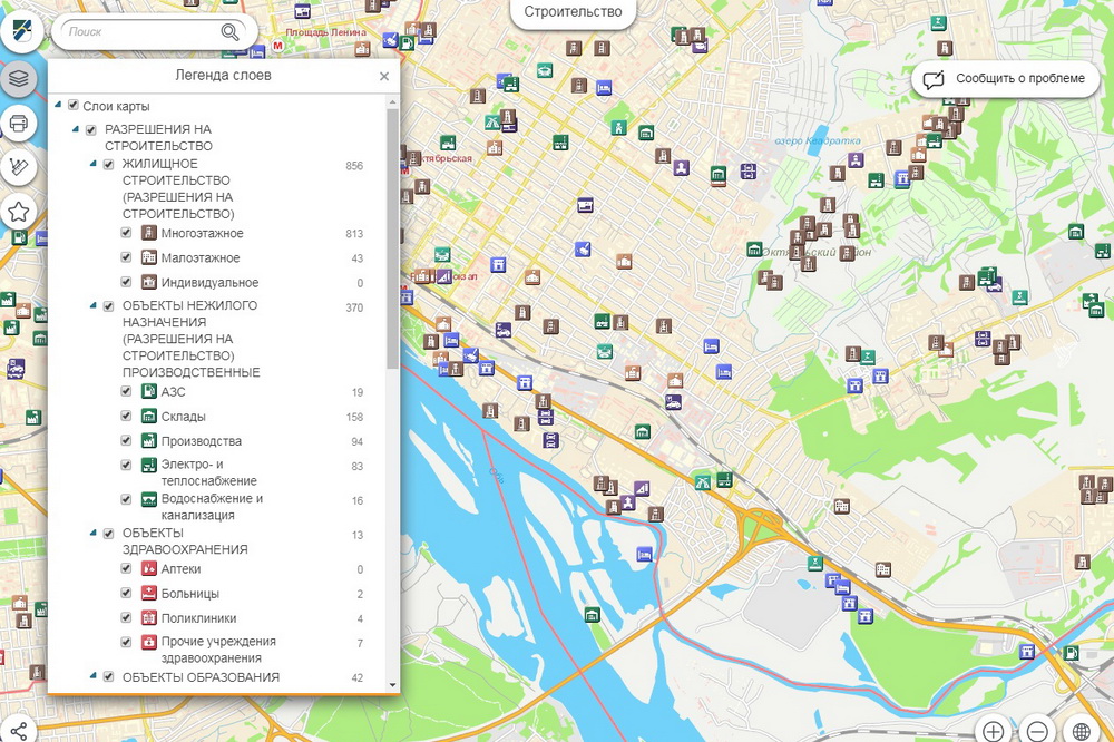 Информацию обо всех строящихся в Новосибирске объектах нанесли на карту
