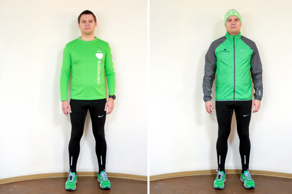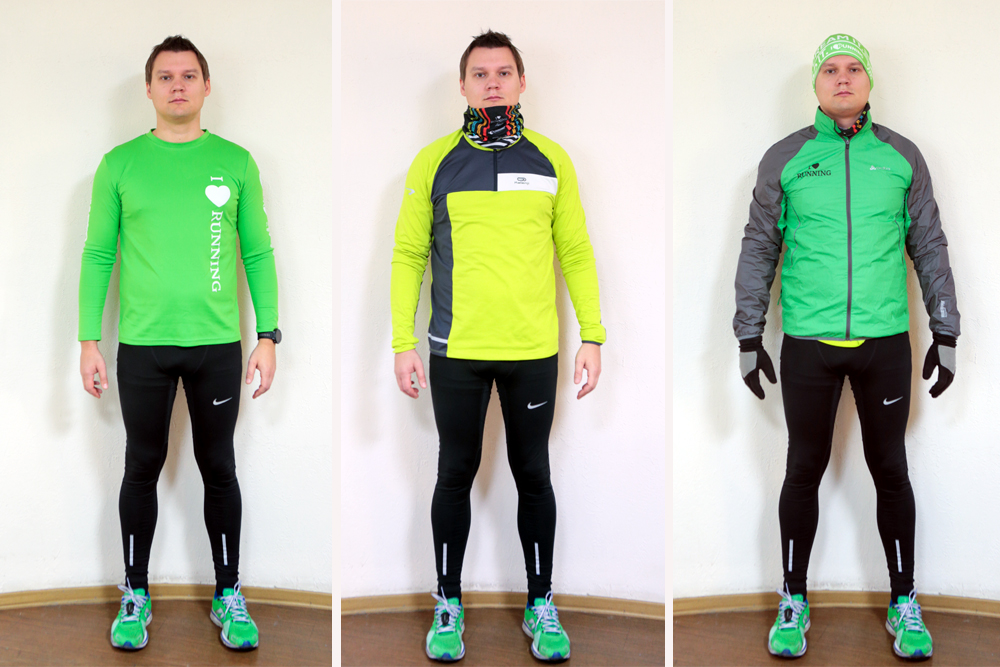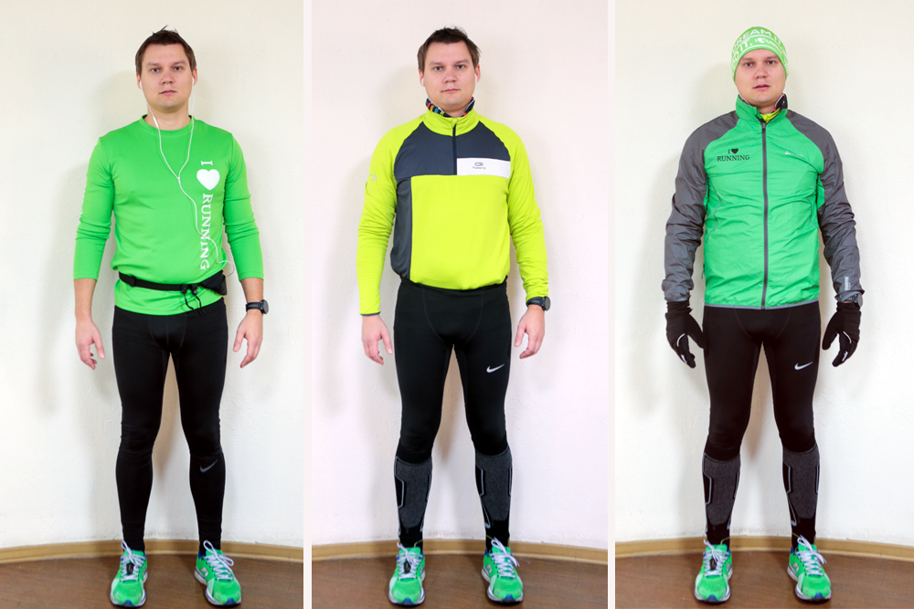 - Создавайте многослойность в одежде. Нижний слой выбирайте из синтетических материалов, способных отводить влагу. Это может быть любое термобельё. Сюда также подойдут водолазки, термокофты с длинным рукавом, специальные футболки для бега, подштанники, легинсы или лосины, которые в среде спортсменов именуются тайтсами.