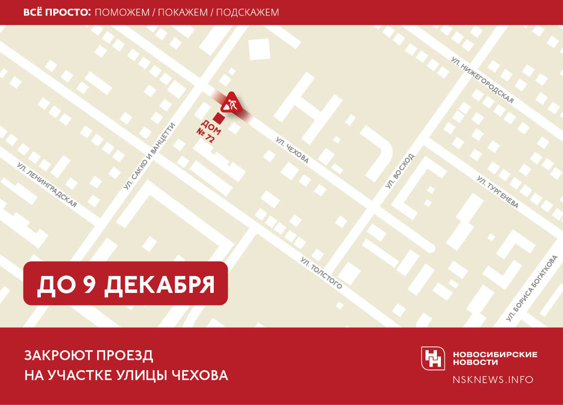 В Новосибирске до 9 декабря закрывают проезд на улице Чехова возле дома №72.