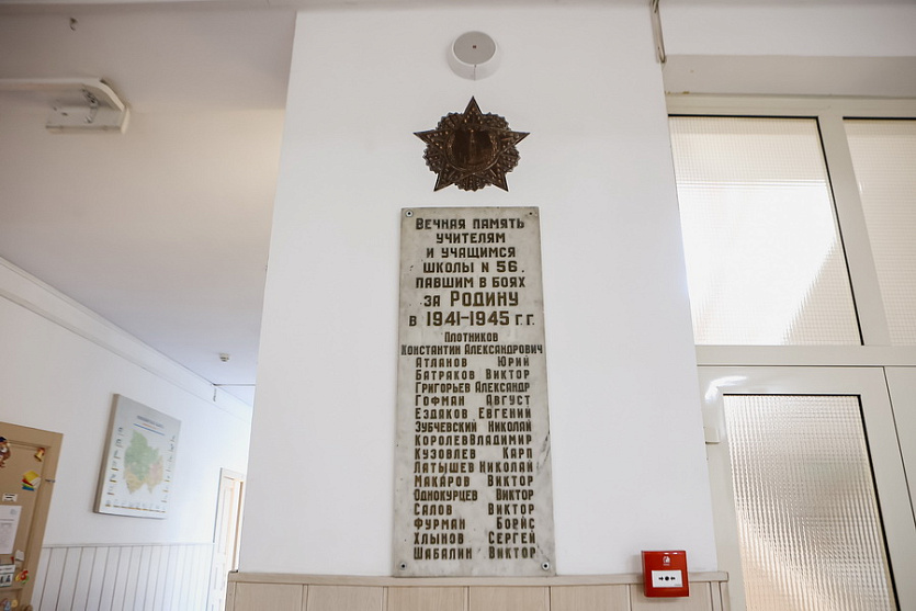 В фойе на первом этаже здания сохранилась установленная в 1979 году мемориальная доска с именами фронтовиков, чьи судьбы связаны со школой.