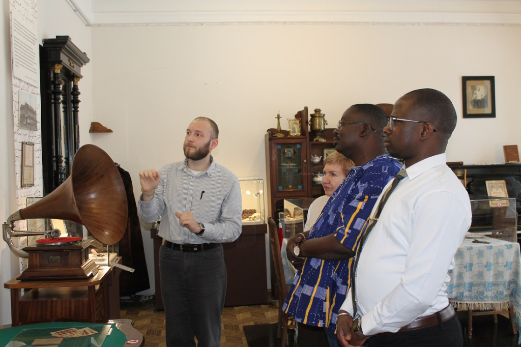 Мэр города Уагадугу Морис Конате и второй секретарь посольства Буркина-Фасо в Российской Федерации Сам Басиру осмотрели уникальное здание Музея на набережной, которое больше века назад стало первым кирпичным административным строением на территории будущего Новосибирска. В начале ХХ столетия здесь находилась канцелярия управляющего Томским имением Алтайского округа Кабинета Его Императорского Величества. Также гости ознакомились с экспозициями выставок «Ново-Николаевск. Дела и люди» и «Линии жизни. Война», узнав о самых любопытных перипетиях ранней истории нашего города и о вкладе новосибирцев в Великую Победу.