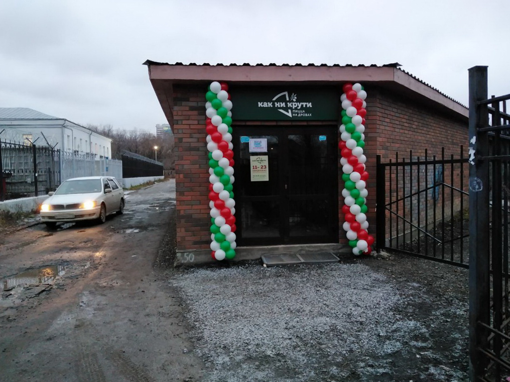 Реконструкция одного из гаражей ГСК на Римского-Корсакова, 11/1 началась летом 2019 года. К зиме гараж превратился в просторный павильон с большими окнами и стеклянной дверью. В запустении он простоял целый год. В октябре 2020-го внутри оборудовали пиццерию — построили дровяную печь с большой трубой, возвышающейся над крышами ГСК, смонтировали стойку заказов и поставили два столика для посетителей. В минувшие выходные на входе в пиццерию появились вывеска «Как ни крути» и шары в цветах итальянского флага.