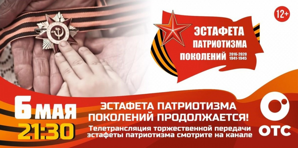 6 мая 2021 года в 21:30 на телеканале ОТС начнётся показ торжественного подведения итогов акции «Эстафета патриотизма поколений», которое состоится двумя днями ранее на площадке дворца культуры железнодорожников. Ветераны Великой Отечественной войны передадут молодому поколению символический знак — «Пламя эстафеты патриотизма». На сцене ДКЖ пройдёт театрализованный концерт, а в фойе — выставка. Всё это смогут увидеть и телезрители на своих домашних экранах.
