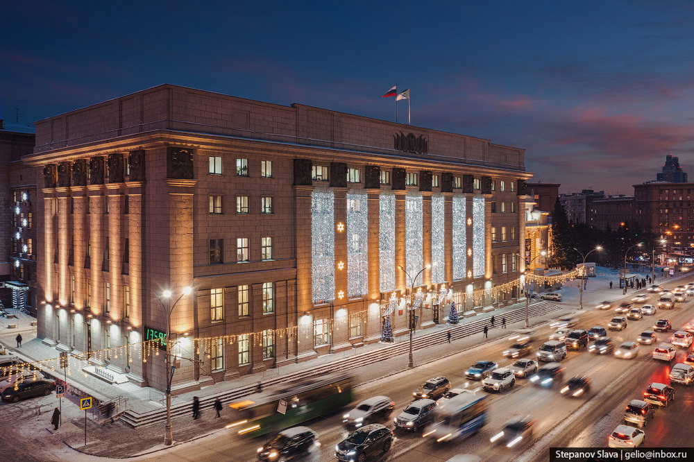 Новосибирский фотограф Слава Степанов (Gelio) выложил в социальные сети подборку снимков новогоднего города. На них можно увидеть эффектную подсветку краеведческого музея, ресторанный дворик за гостиницей «Центральная», украшенный световыми нитями фасад мэрии, «позеленевший» в честь праздника оперный театр, главную городскую ёлку и прославившийся на всю страну каток.