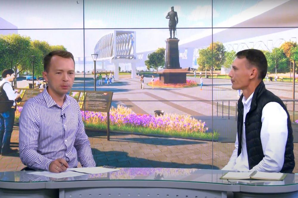 — Безусловно, мы учитываем эти объекты. Они легли в основу нашего проектного решения. Всё оно завязано вокруг площади, на которой расположены памятник царю и опора моста. Мы подходим на площадь, вокруг неё располагаются инфостенды, мы их видим на картинке. На этих стендах будет рассказана история города, этого места.