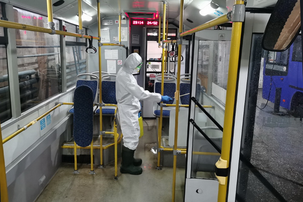 Как дезинфицируют автобусы на самом крупном ПАТП Новосибирска