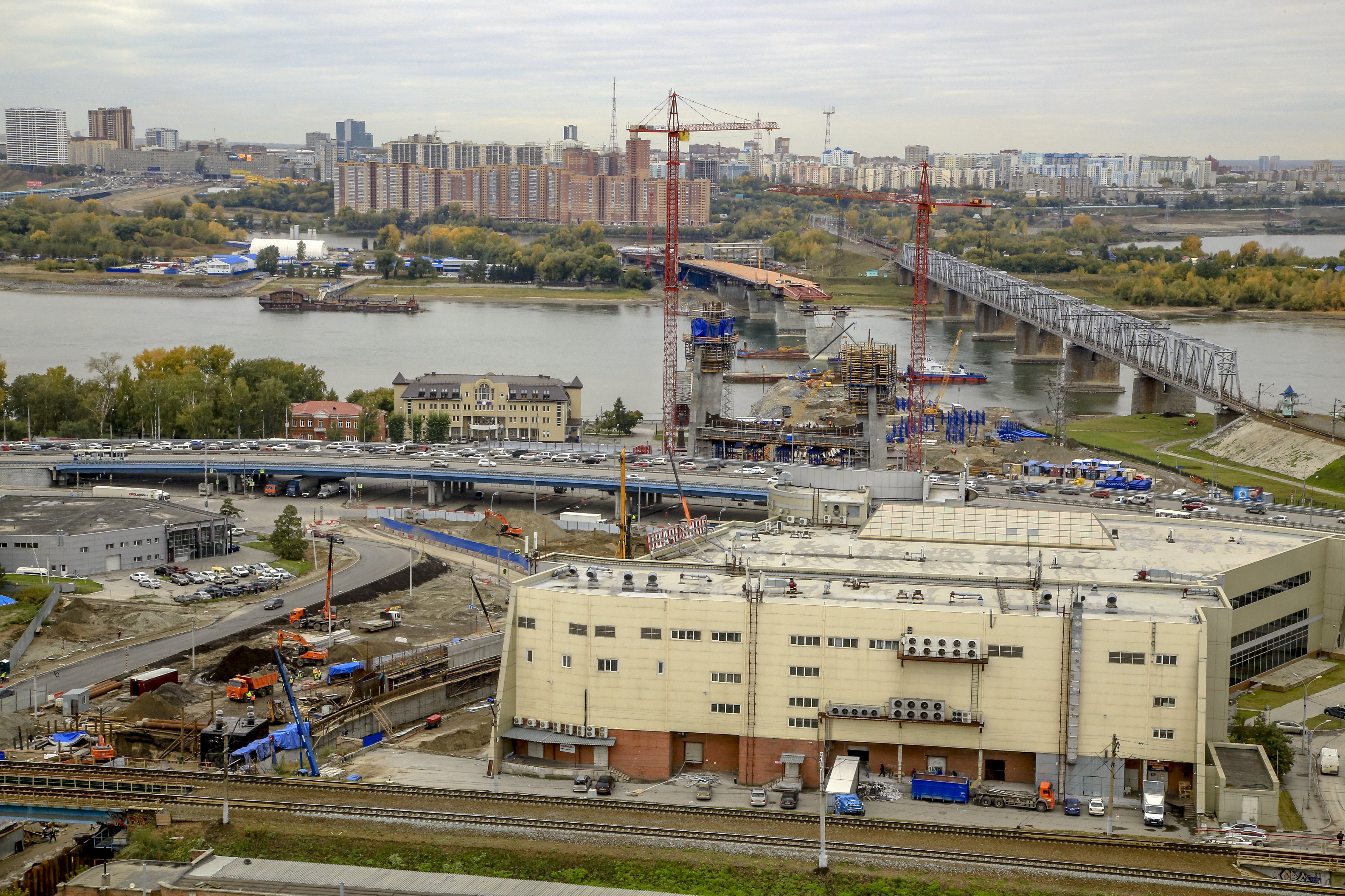 До конца этого года застройщик четвёртого моста в Новосибирске завершит надвижку пролётных конструкций на опоры в русле Оби и на нижнюю перемычку гигантского пилона. Чтобы оценить размах стройки, фотокорреспондент «Новосибирских новостей» забрался на самый высокий дом правого берега. Как идёт строительство моста, насколько уже вырос 114-метровый пилон и готовы ли подъездные пути к развязке на площади Будагова — смотрите в нашем фотоотчёте.