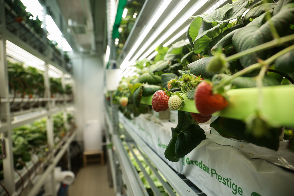 Как съедобные цветы и гигантская клубника растут в подвале Технопарка