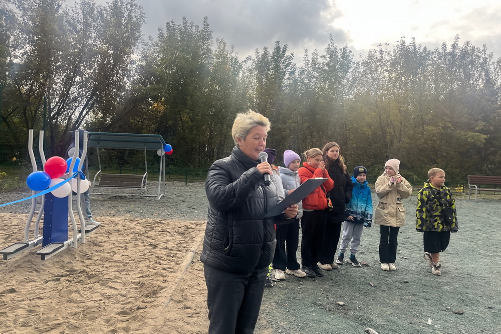 «Мы взяли инициативу в свои руки. Вот здесь большая территория — это всё был кустарник. Мы вырубили кусты, сделали спортивную площадку, футбольное поле. Здесь можно и в баскетбол поиграть, и в волейбол. Потом мы решили сделать спортивный тренажёр. Детям очень хотелось, чтобы было как в городе», — рассказывает активист совета ТОС «Звёздный» Людмила Райц.