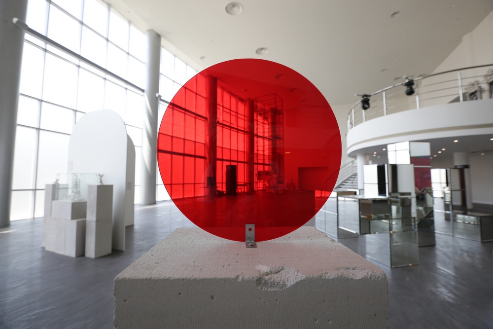 Красные призмы — символ фестиваля. Дают возможность взглянуть на себя по-другому через яркий фильтр. А ещё они похожи на пятна, которые мы видим, когда долго смотрим на солнце и потом закрываем глаза.