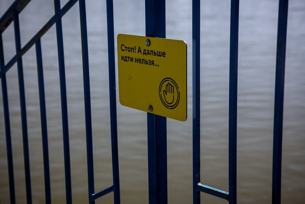 Там, где заканчивается бетон, висят сразу две таблички. Одна сообщает, что купаться запрещено, вторая — что дальше прохода нет. Однако никого из местных жителей это не останавливает. Некоторые любители позагорать используют песчаную насыпь на берегу как пляж.