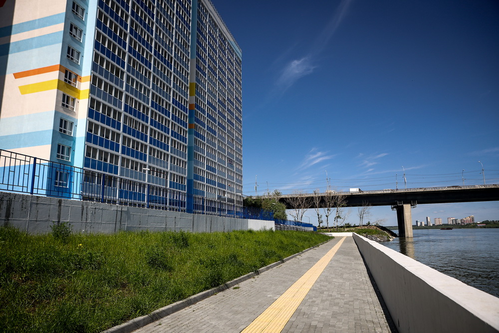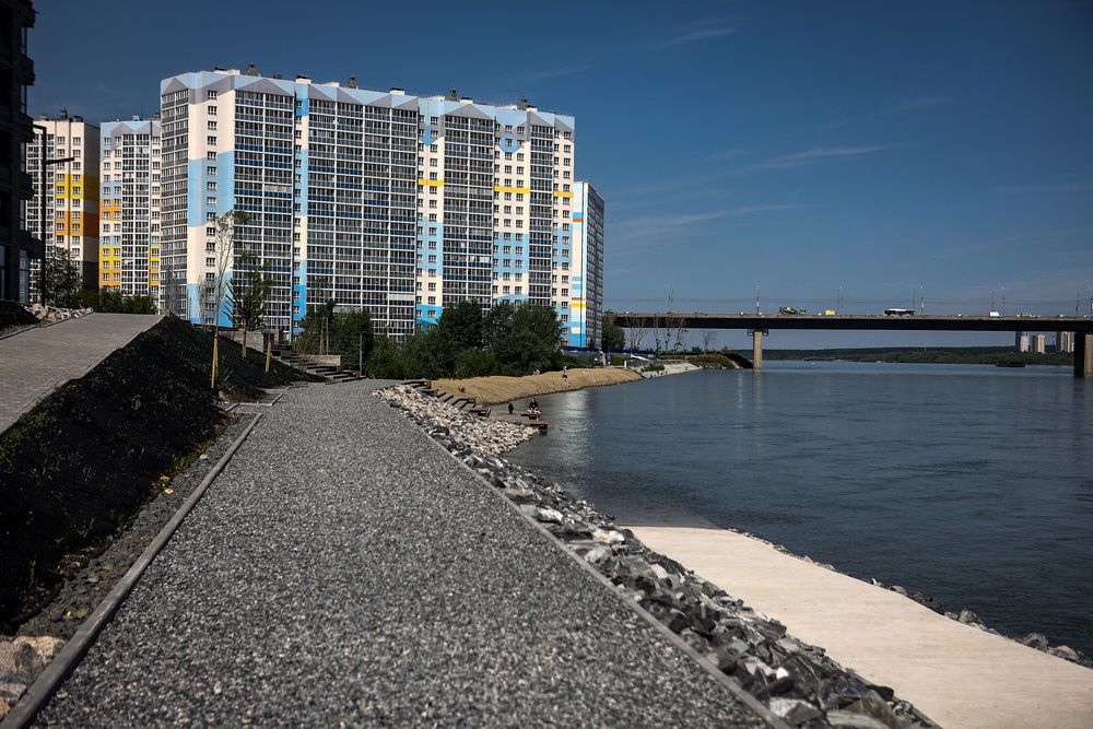 В Новосибирске сформировалась ещё одна набережная. Общественную зону для прогулок у воды оборудовали застройщики жилых комплексов «Венеция» и «Ясный берег» на левом берегу Оби.