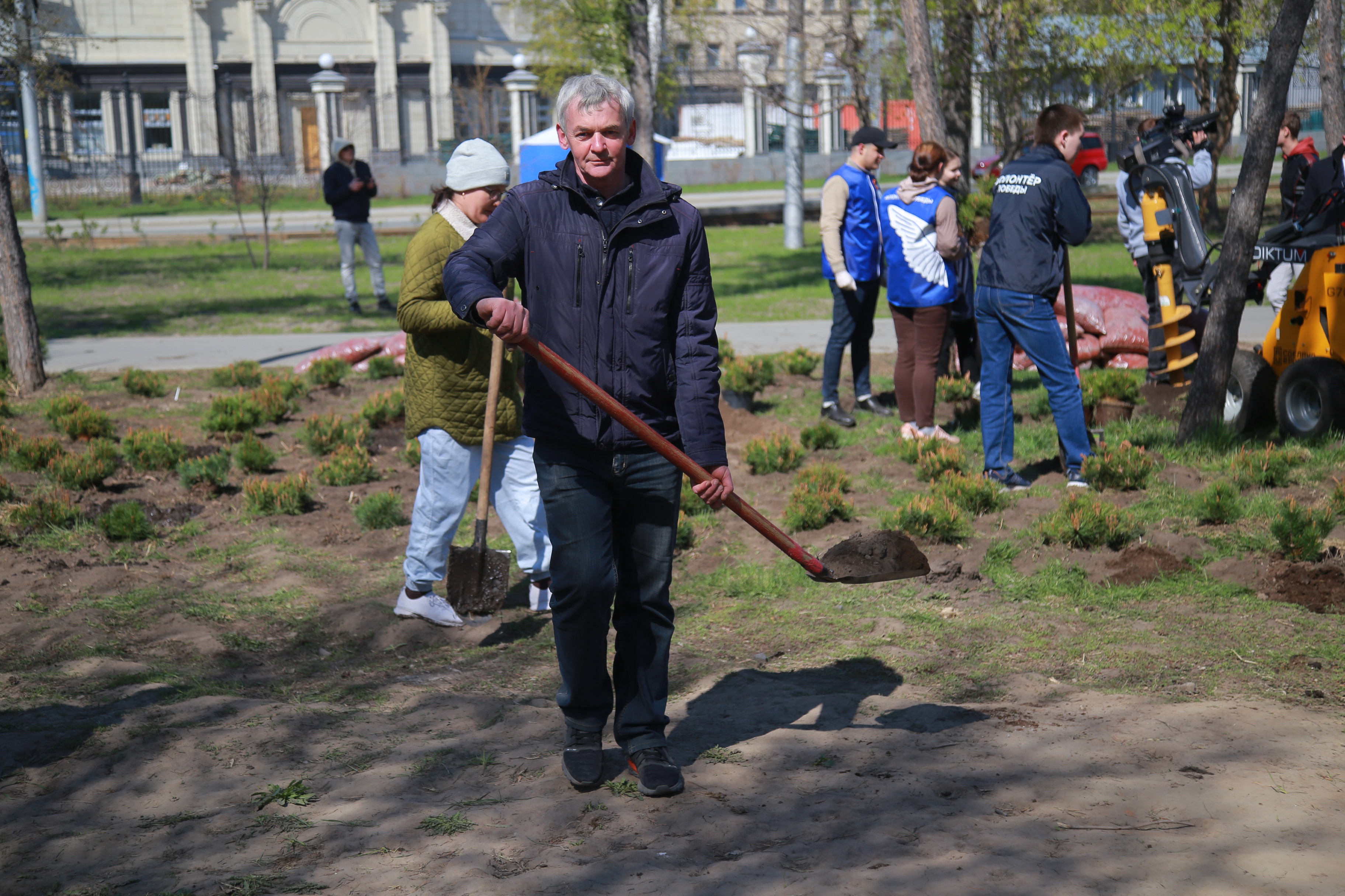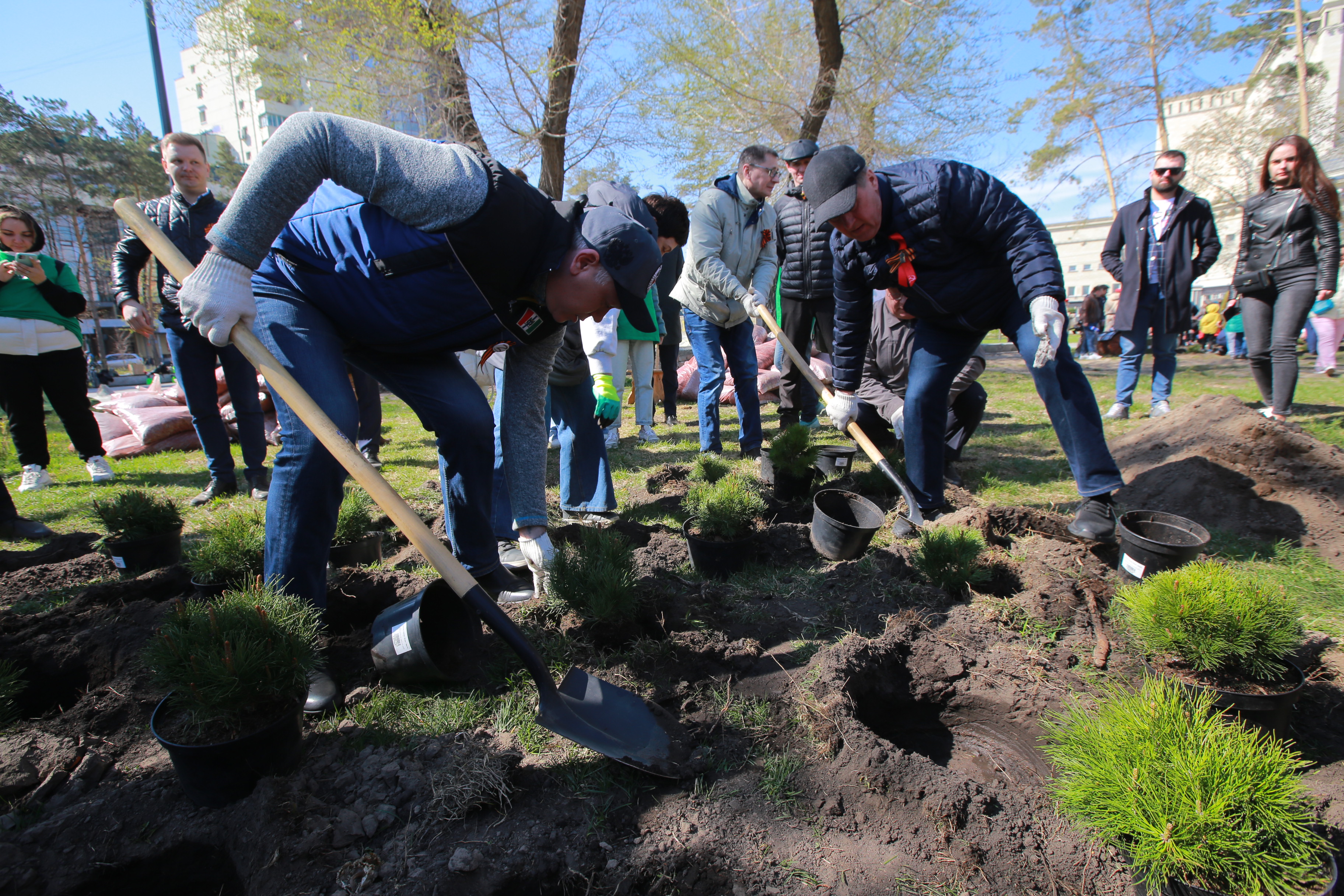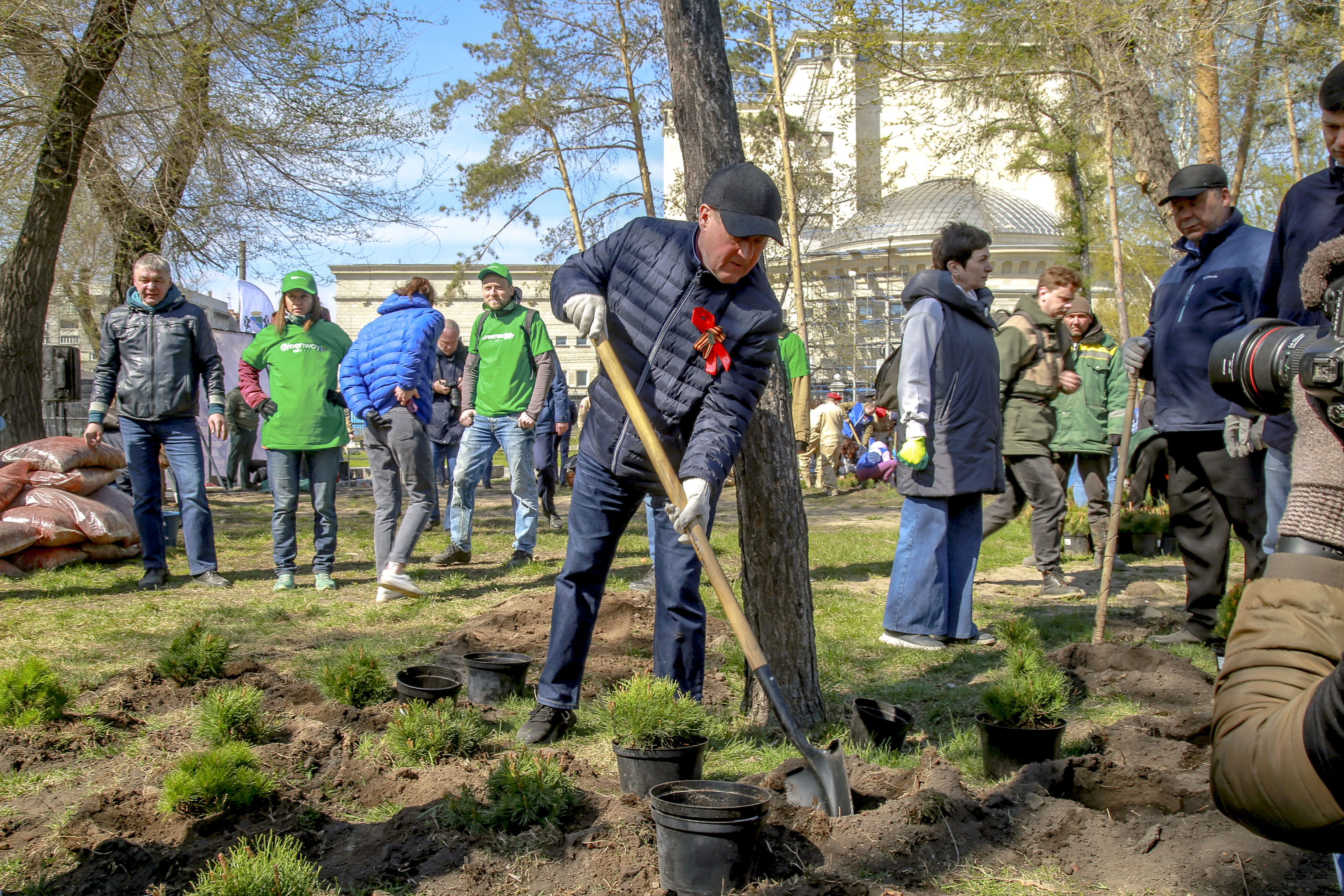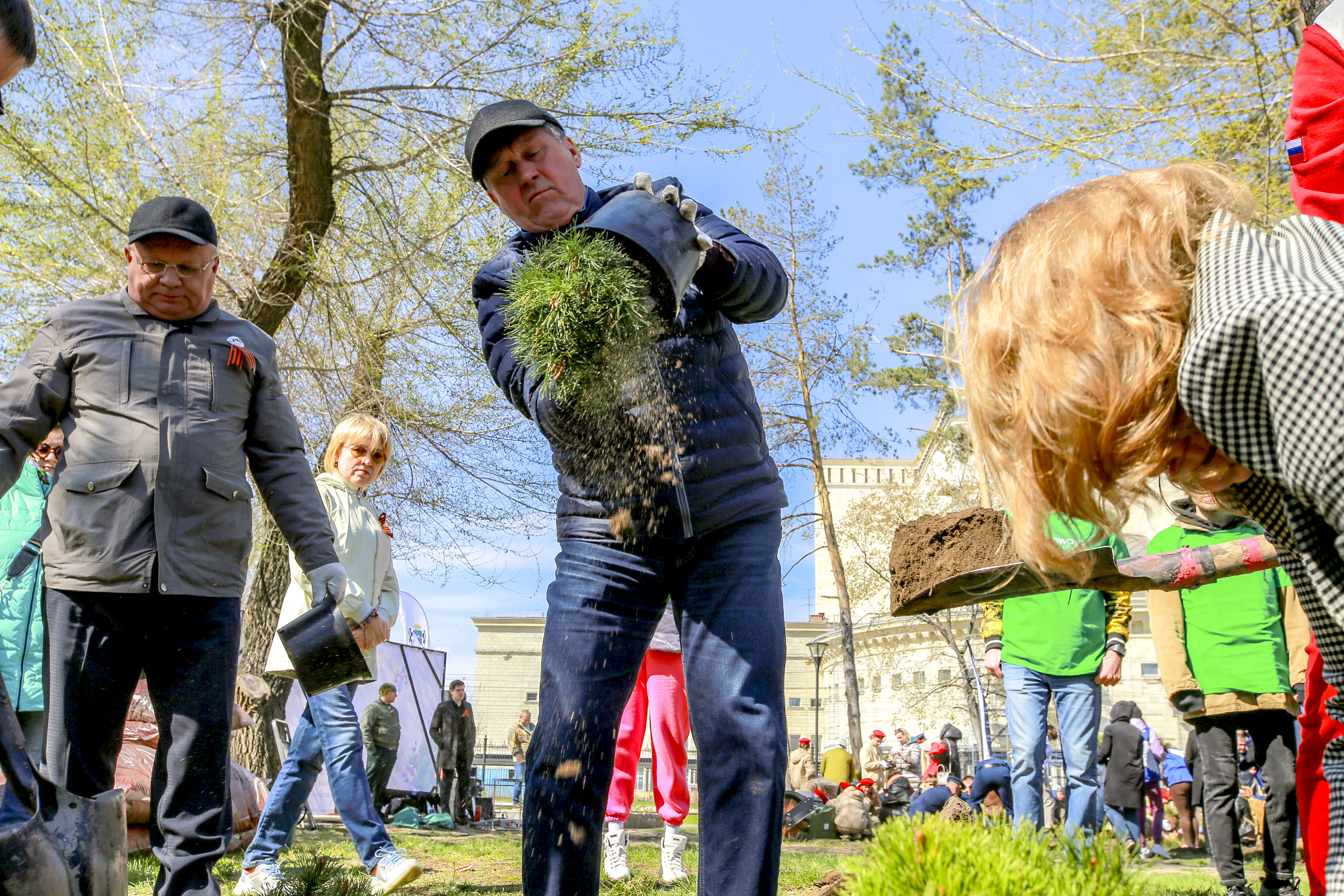 «В череде мероприятий по подготовке к празднованию 77-й годовщины Победы эта акция, наверное, самая гуманистически направленная, самая добрая. В моём понимании это продолжение нашего „Бессмертного полка“, который завтра, 9 мая, пойдёт по Красному проспекту, а сегодня мы сажаем деревья в память о наших погибших героях. Мы знаем, что эти деревья будут расти, украшать нашу землю, наш город, и будут вспоминать приходящие сюда потомки, в честь кого высажен этот сквер», — подчеркнул Анатолий Локоть.