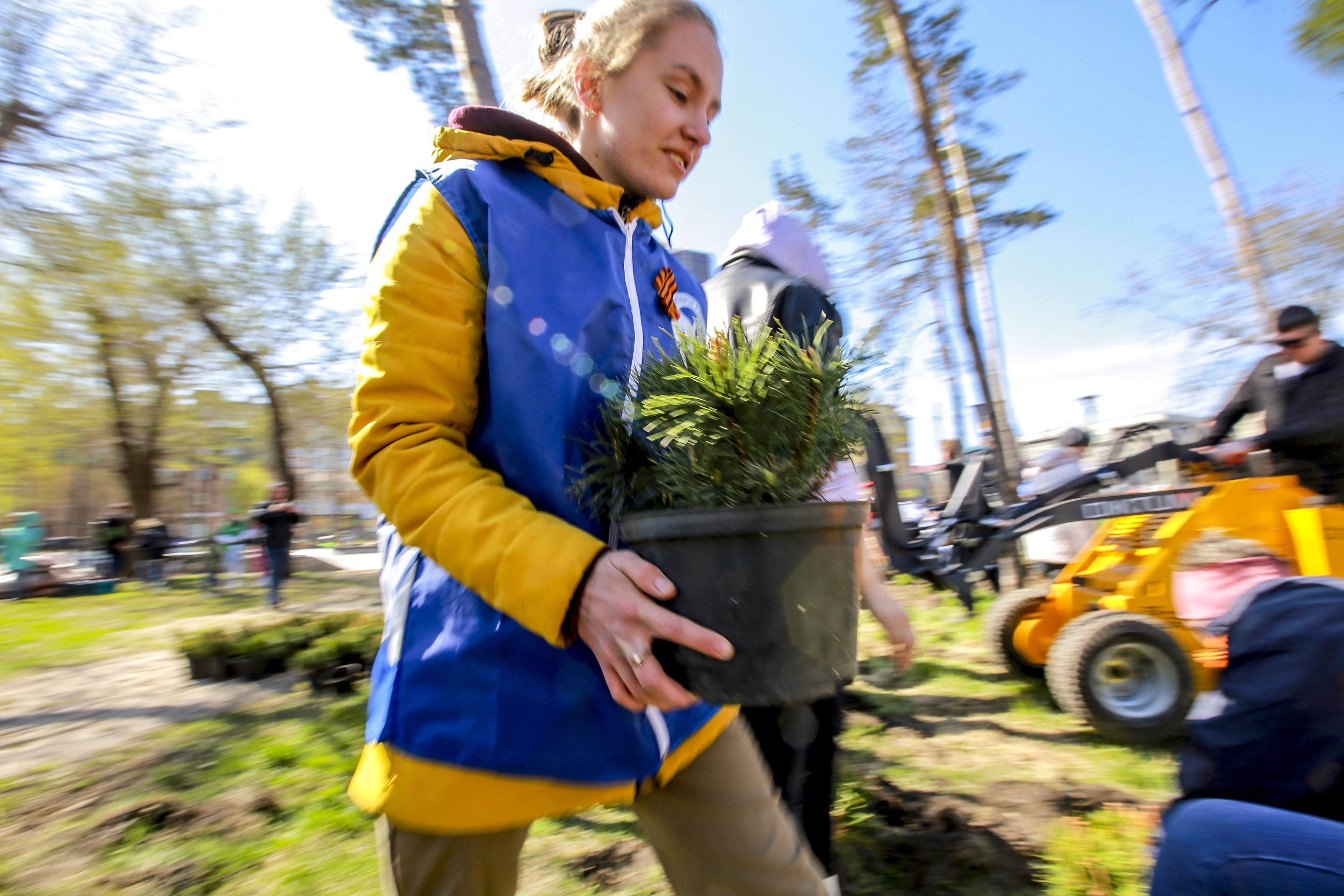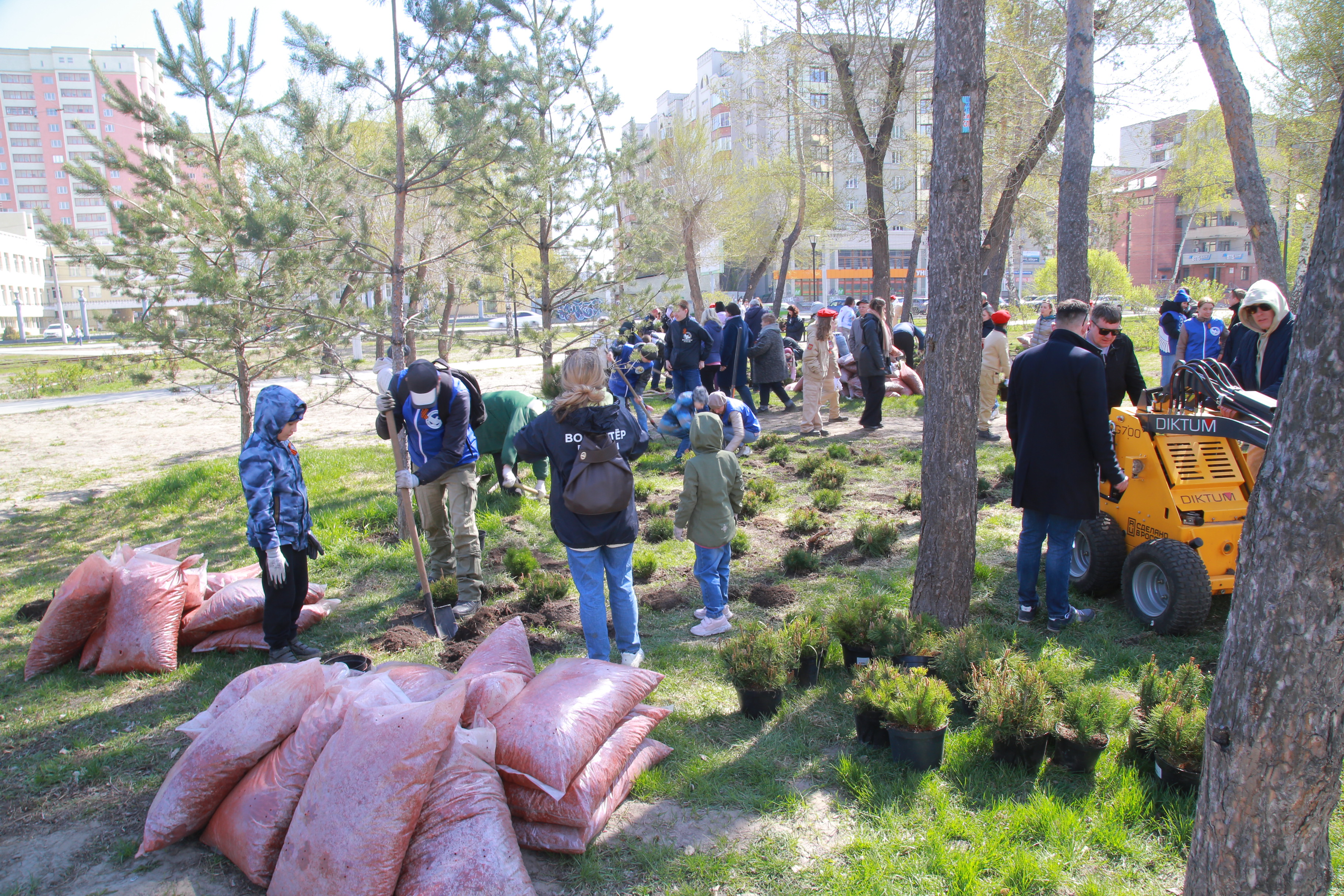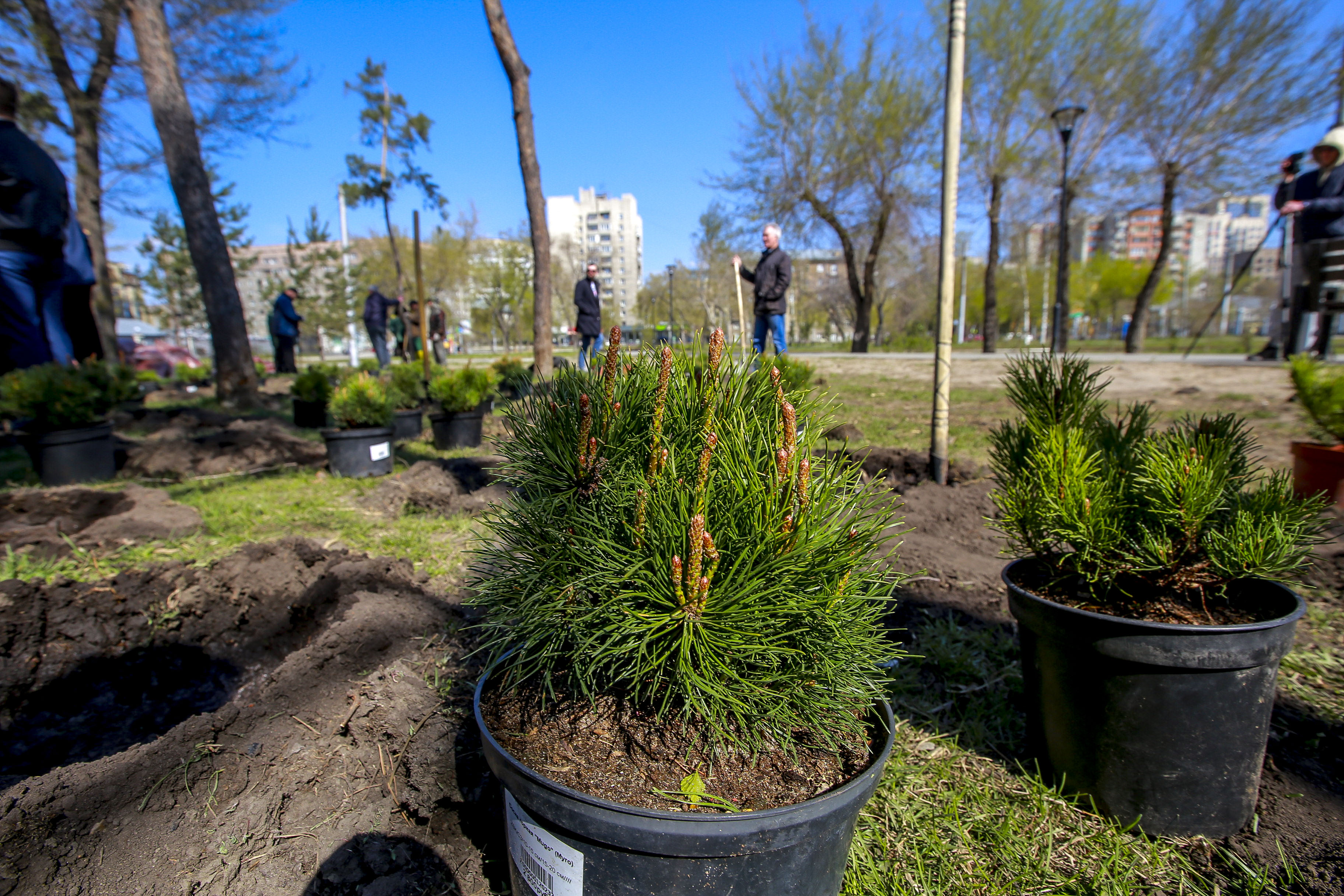Карликовые сосны высадили за оперным в память о погибших на войне