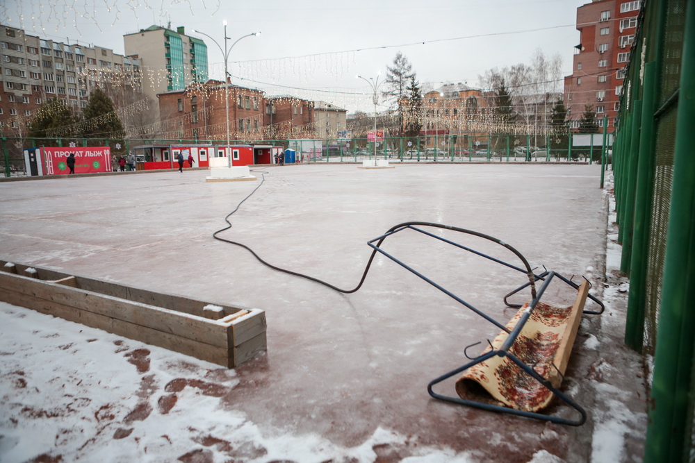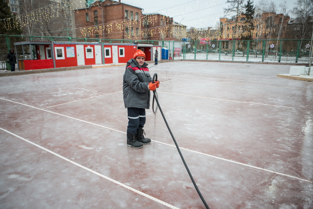 «Начинаем выглаживать лёд и потихонечку наращивать слой, чтобы он был ровный, нормальный, гладкий, скользкий. Прокат коньков, тёплые раздевалки есть. Стоимость проката мы не увеличивали, она уже третий сезон будет 156 рублей (без льгот). И в этом году у нас новшество: посередине сделали два островка — здесь будут светящиеся скамейки», — рассказал заместитель директора учреждения «Стадион» Юрий Евдокимов.