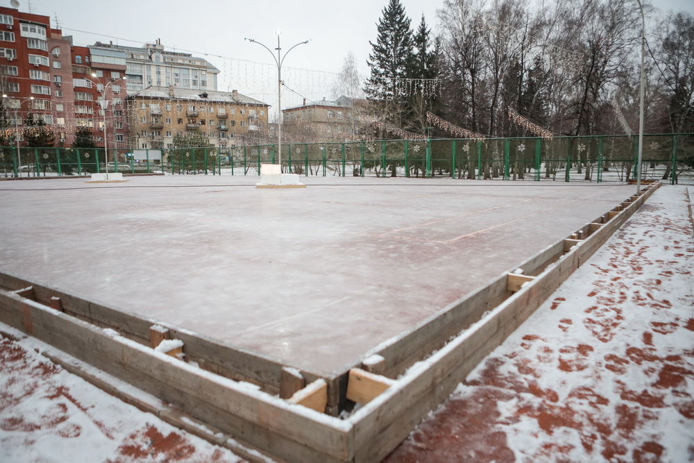 В Новосибирске начали заливать катки. Сейчас площадку готовят в Нарымском сквере.