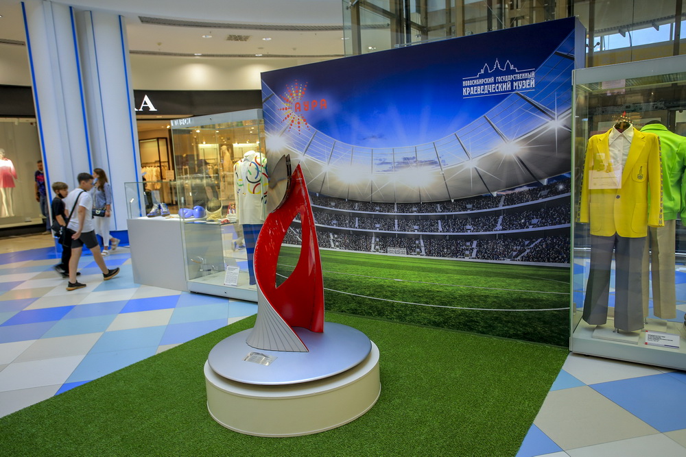 Выставку «Наши олимпийские чемпионы» собрал новосибирский краеведческий музей. Посмотреть её можно в ТРЦ «Аура». Не заметить экспозицию сложно — её возглавляет большая инсталляция с олимпийским факелом, на фоне которого можно делать селфи.