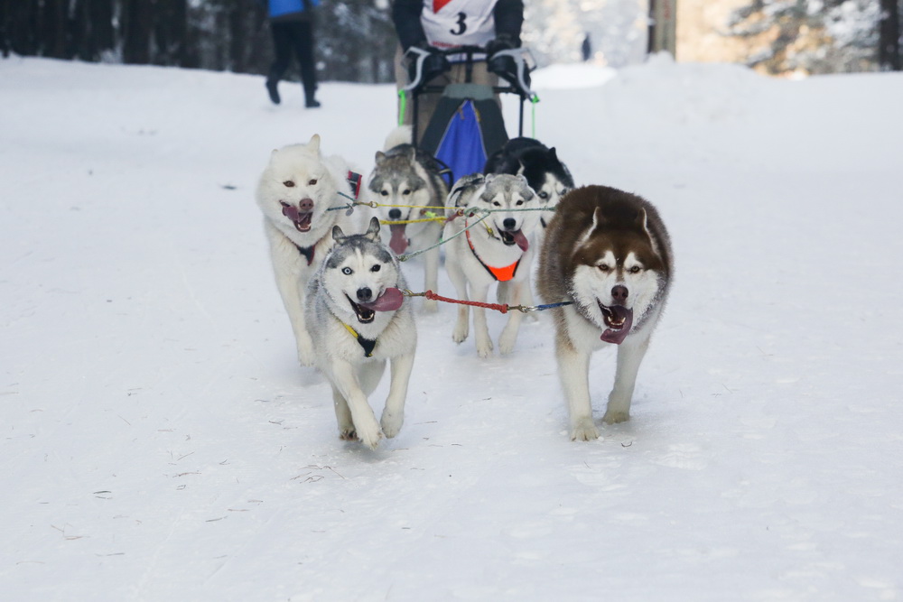 Герои ездового спорта — хаски, якутские лайки, самоеды и маламуты — традиционно соревнуются в скорости и умении перебирать лапами по снежным сугробам.