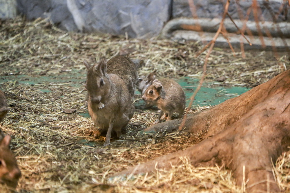 Сибирь не Аргентина, но в тёплых вольерах новосибирского зоопарка чакоанские мары чувствуют себя как дома. Похожие на зайцев грызуны мирно уживаются с приматами. Детёныши появились сразу в трёх парах. Пока они всё чаще прячутся в убежище, зарываются в сено, но уже не боятся посетителей и предпринимают робкие попытки играть друг с другом.