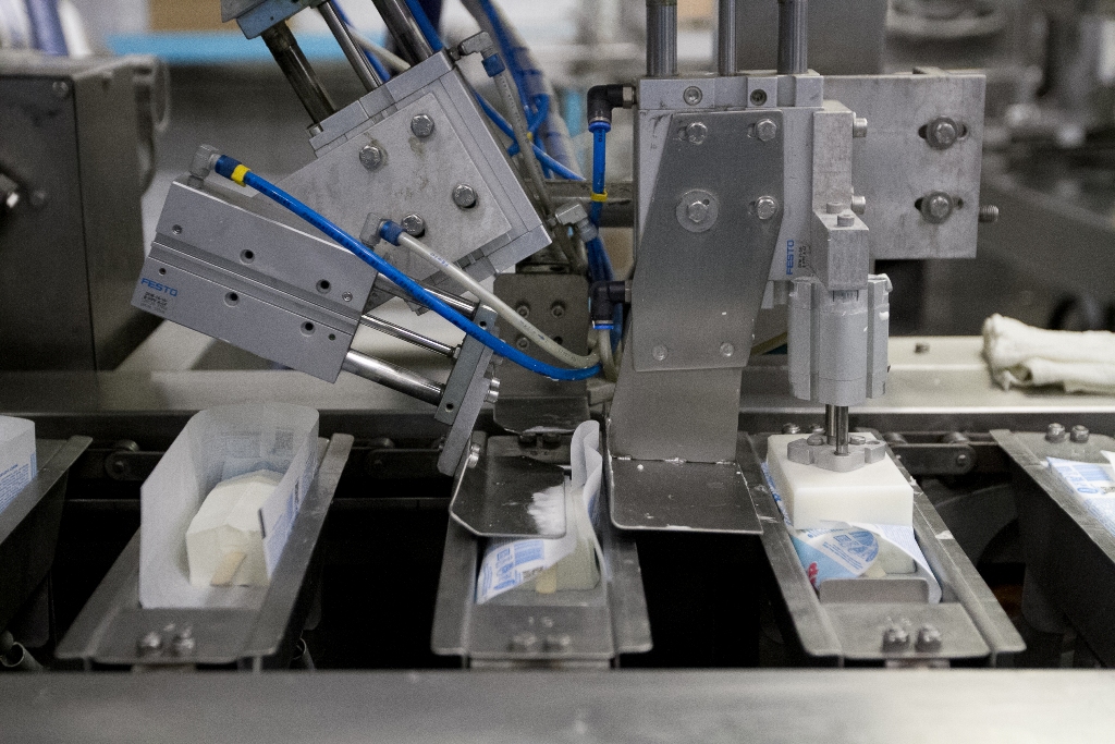 Жарко, как в бане, и в цехе, где делают вафельные стаканчики. Температура тут +50 градусов и всегда пахнет жареным. Правда, вафли пекут автоматы, и человеку лишь приходится складывать стаканчики и рожки в столбик и отсеивать брак.