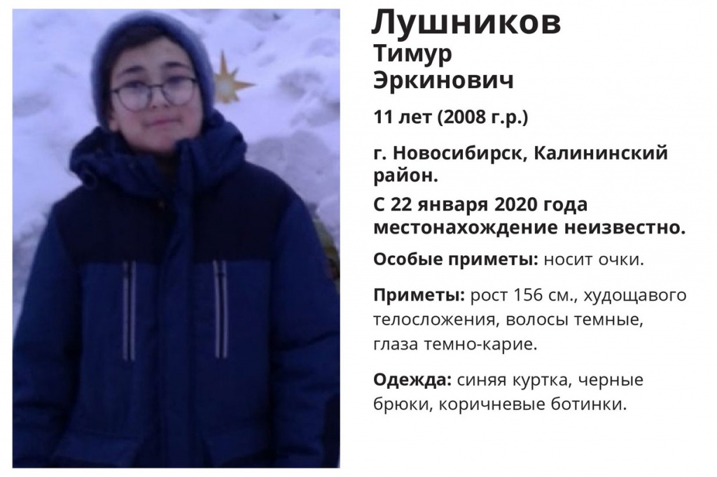 В Калининском районе Новосибирска объявили в розыск 11-летнего Тимура Лушникова, сообщили в поисковом отряде «Лиза Алерт».