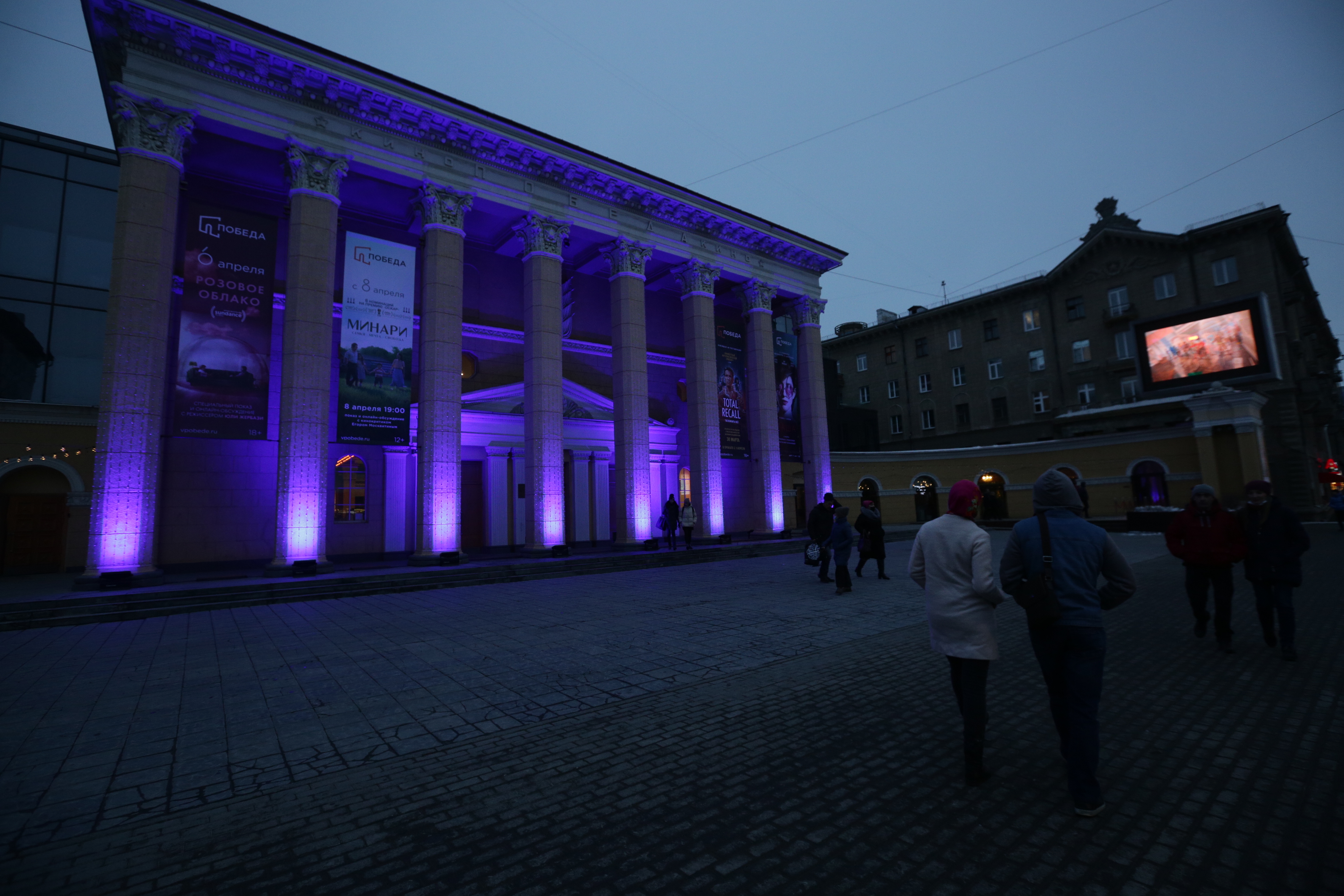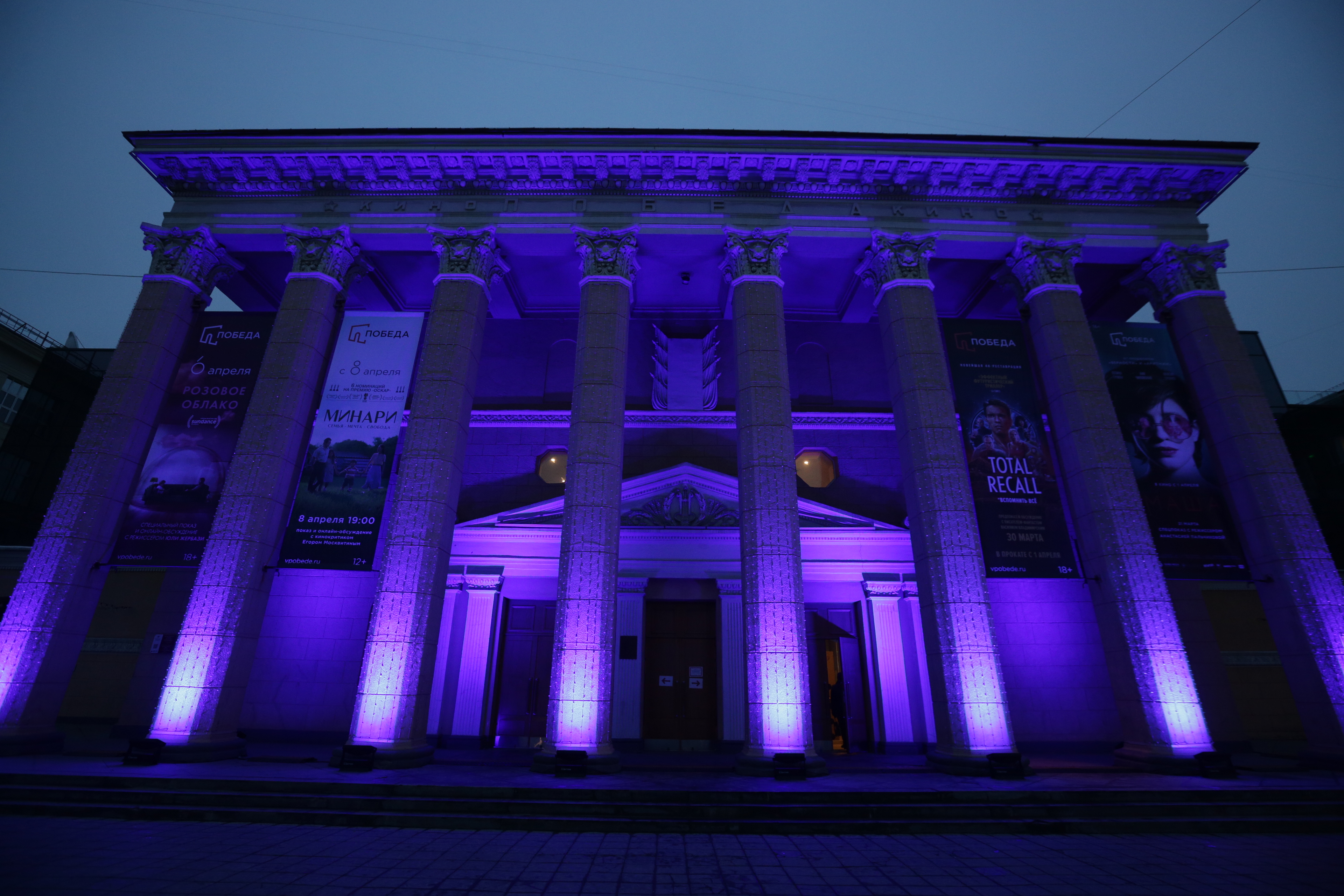 Кинотеатр «Победа» подсветили синим в поддержку людей с аутизмом
