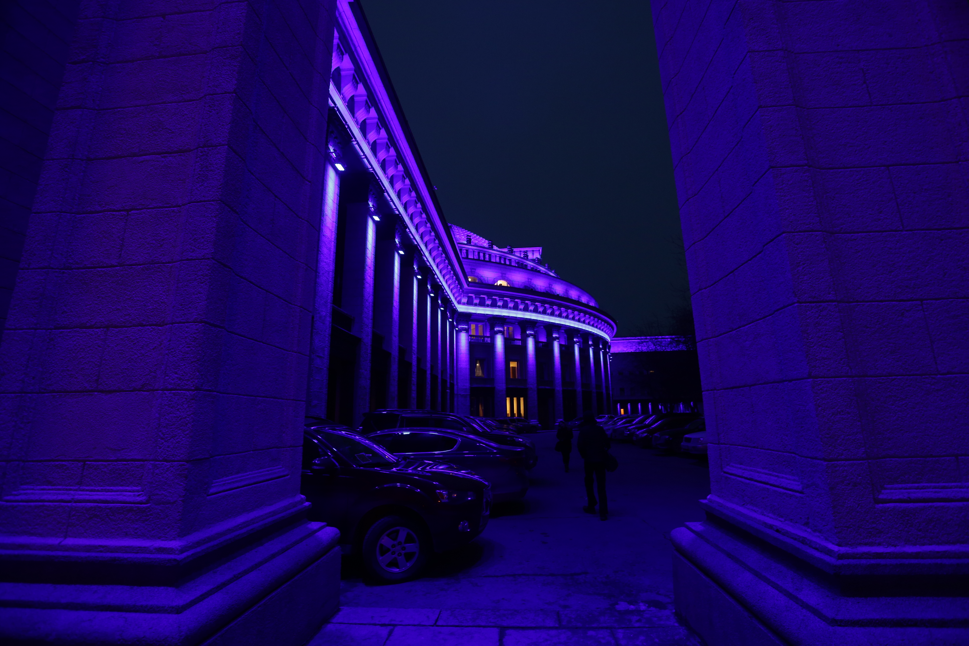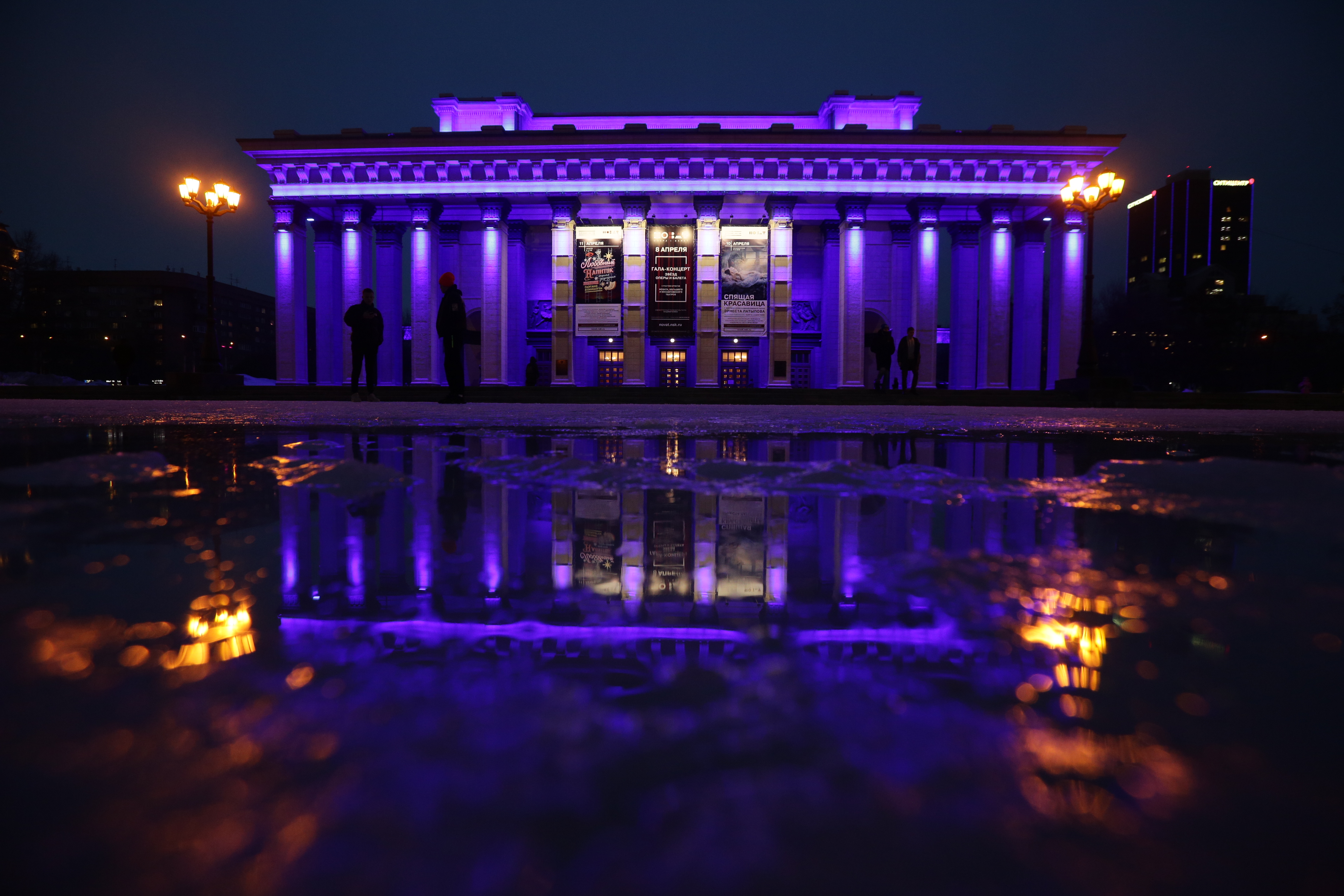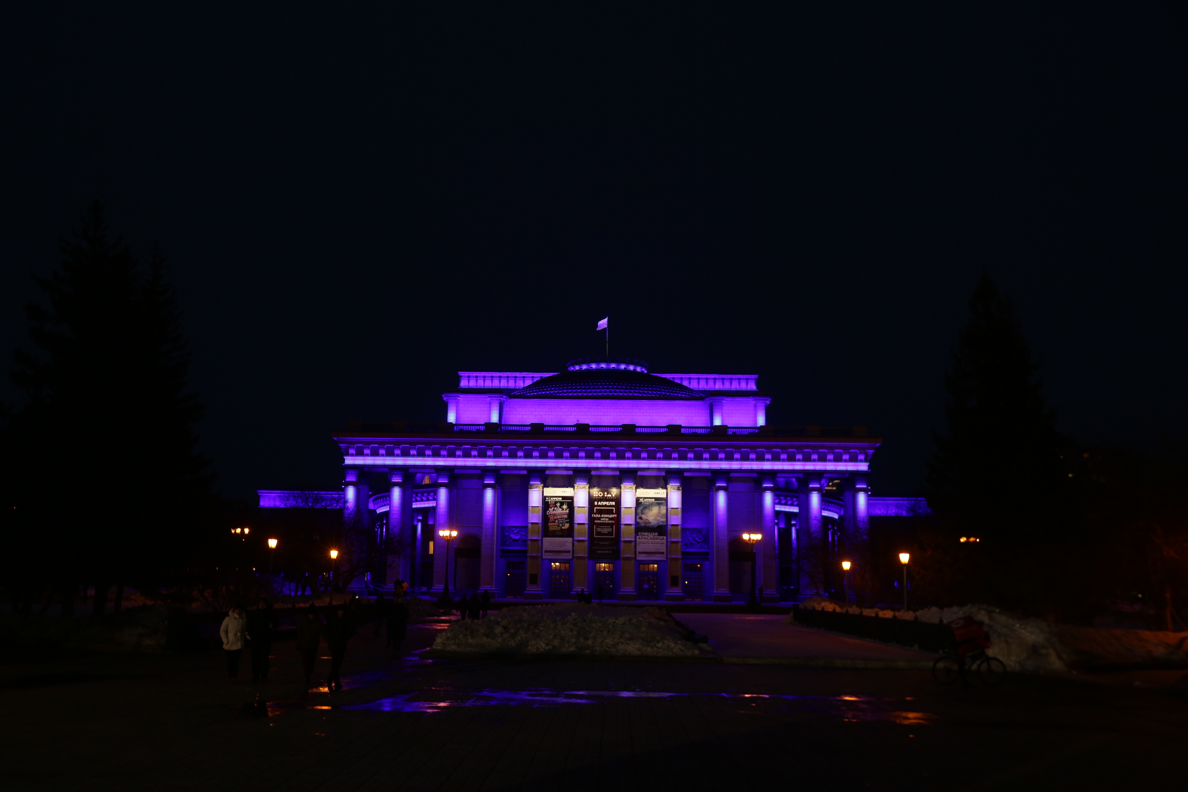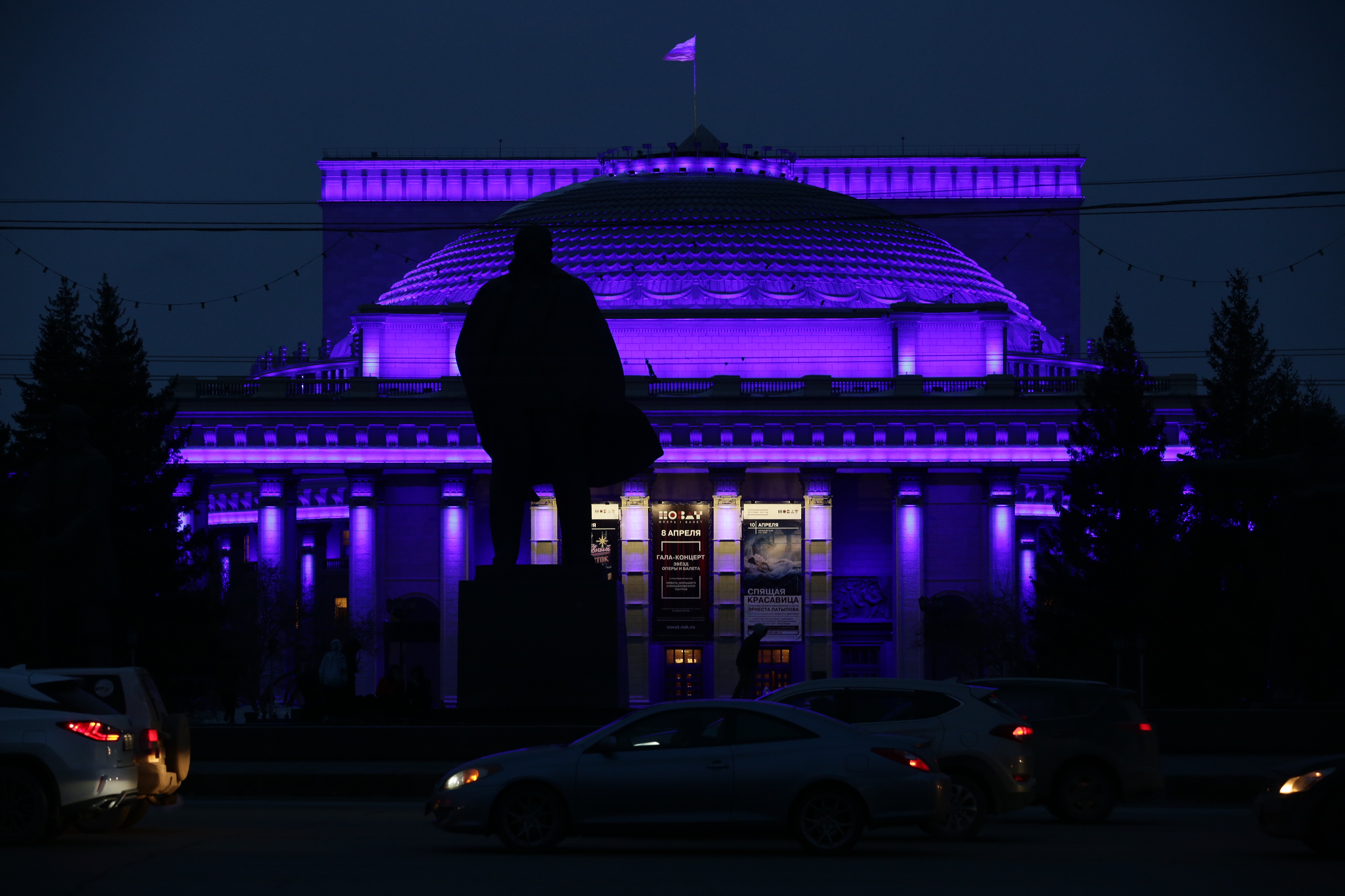 Новосибирский оперный и кинотеатр «Победа» присоединились к акции в поддержку людей с расстройством аутистического спектра: вечером 2 апреля на обоих зданиях включили яркую синюю подсветку.