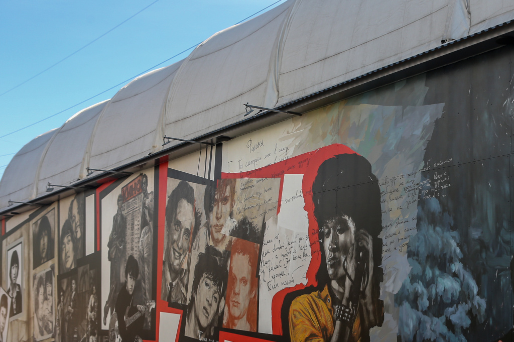По его словам, главным итогом работы в этом году стали памятник музыканту и четыре масштабных полотна, нарисованных на стенах складов со строительными материалами. Картины посвящены биографии и творчеству Виктора Цоя. Два месяца над ними трудился известный художник из Иркутска Василий Каптырев. Первый мурал площадью больше 100 кв. метров он нарисовал ещё осенью 2022 года.