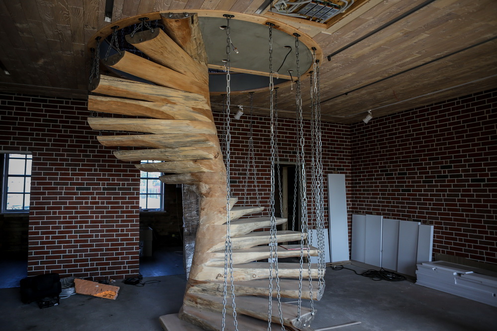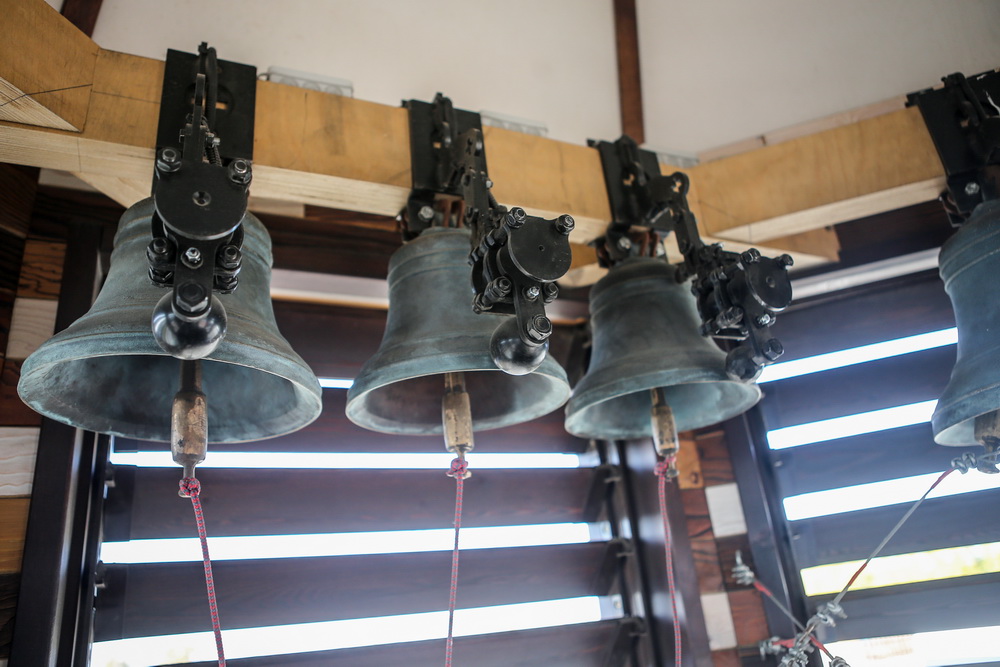 Ещё выше, к самим колоколам, нужно подниматься по простой деревянной лесенке. Из окон башни открывается вид на новое общественное пространство.