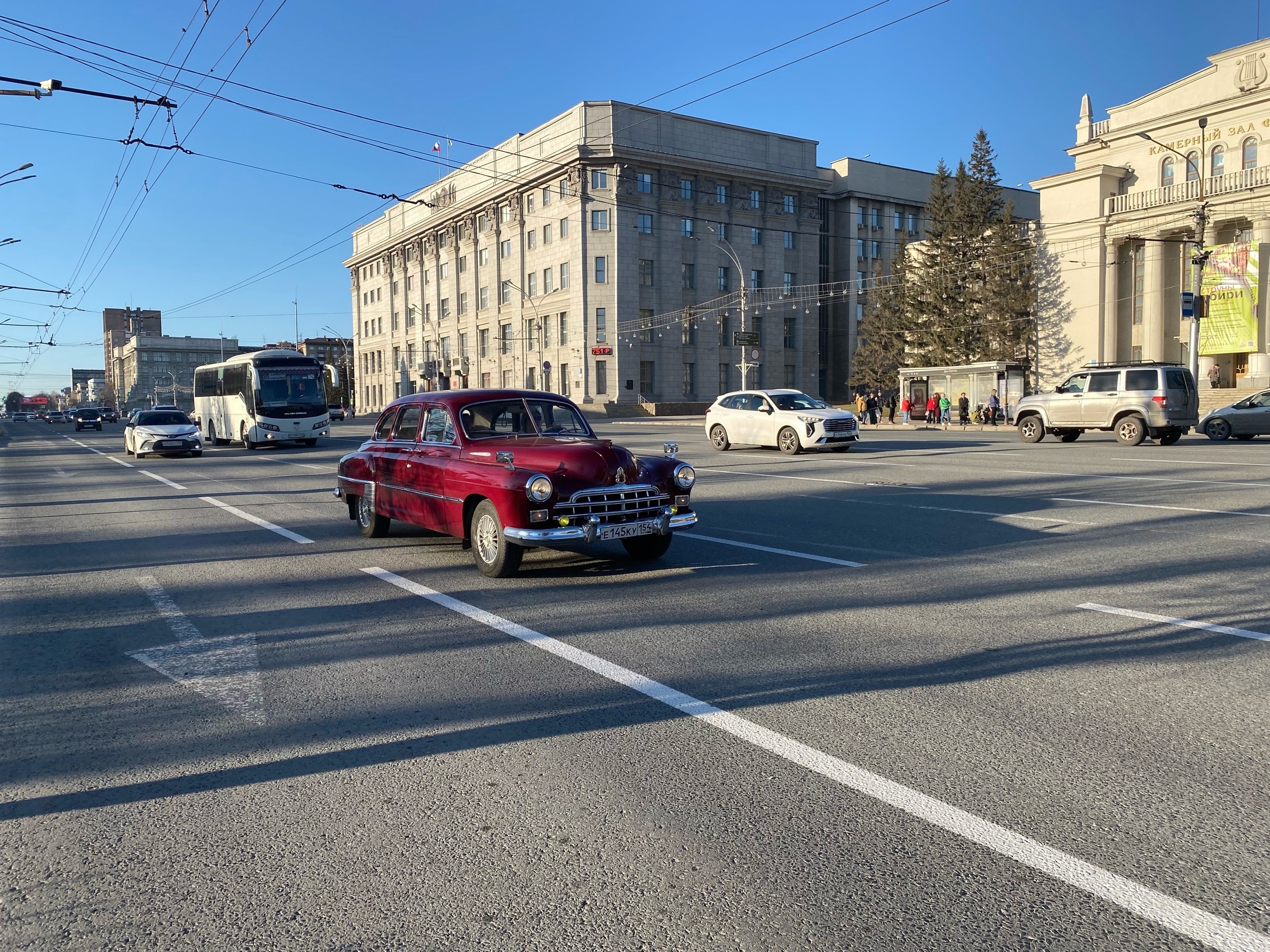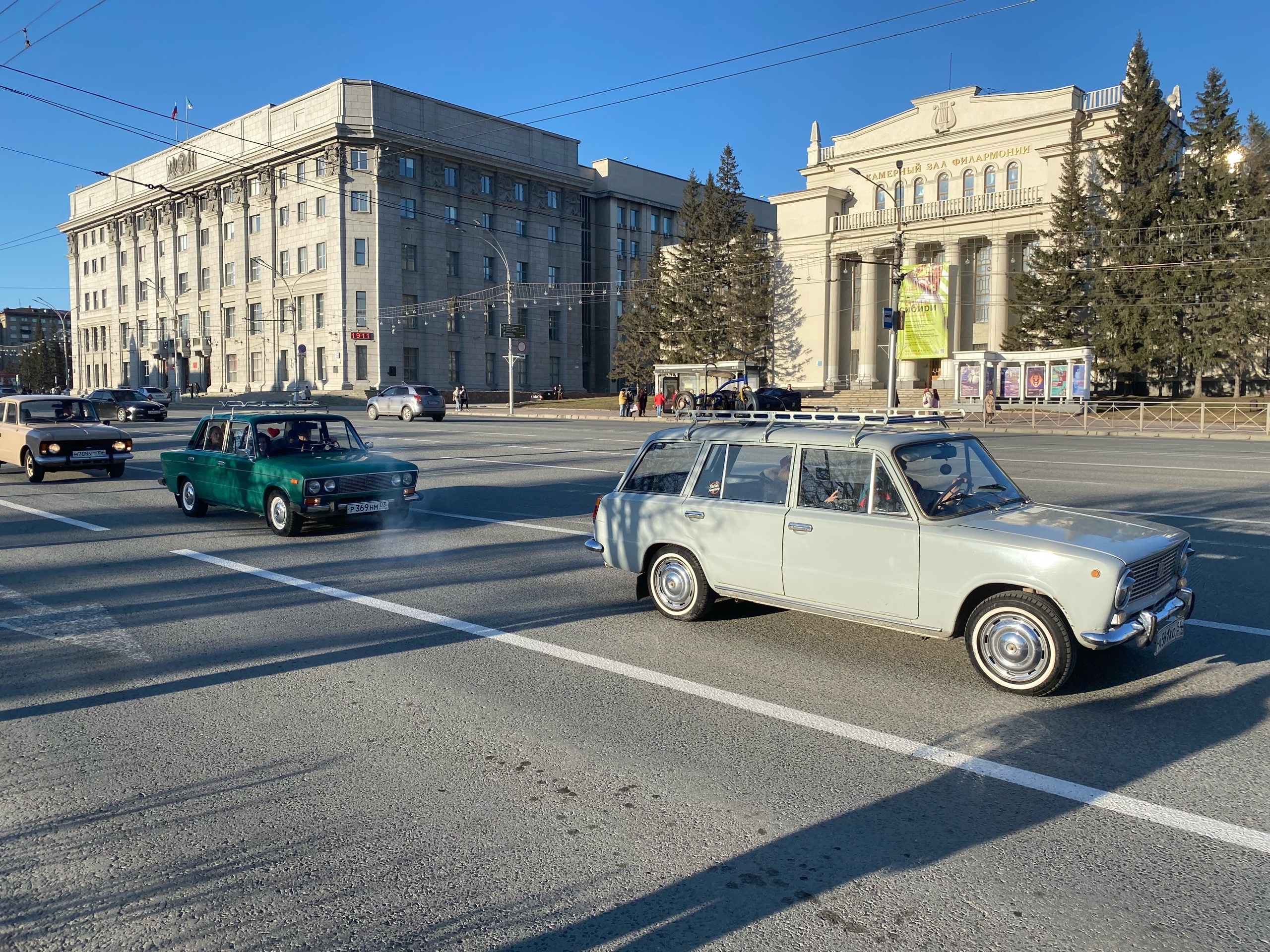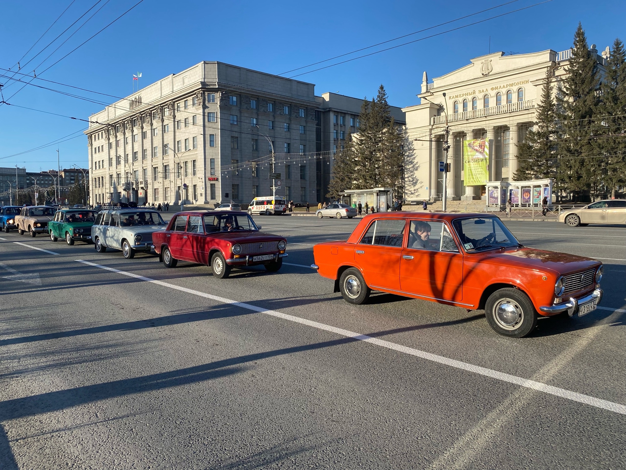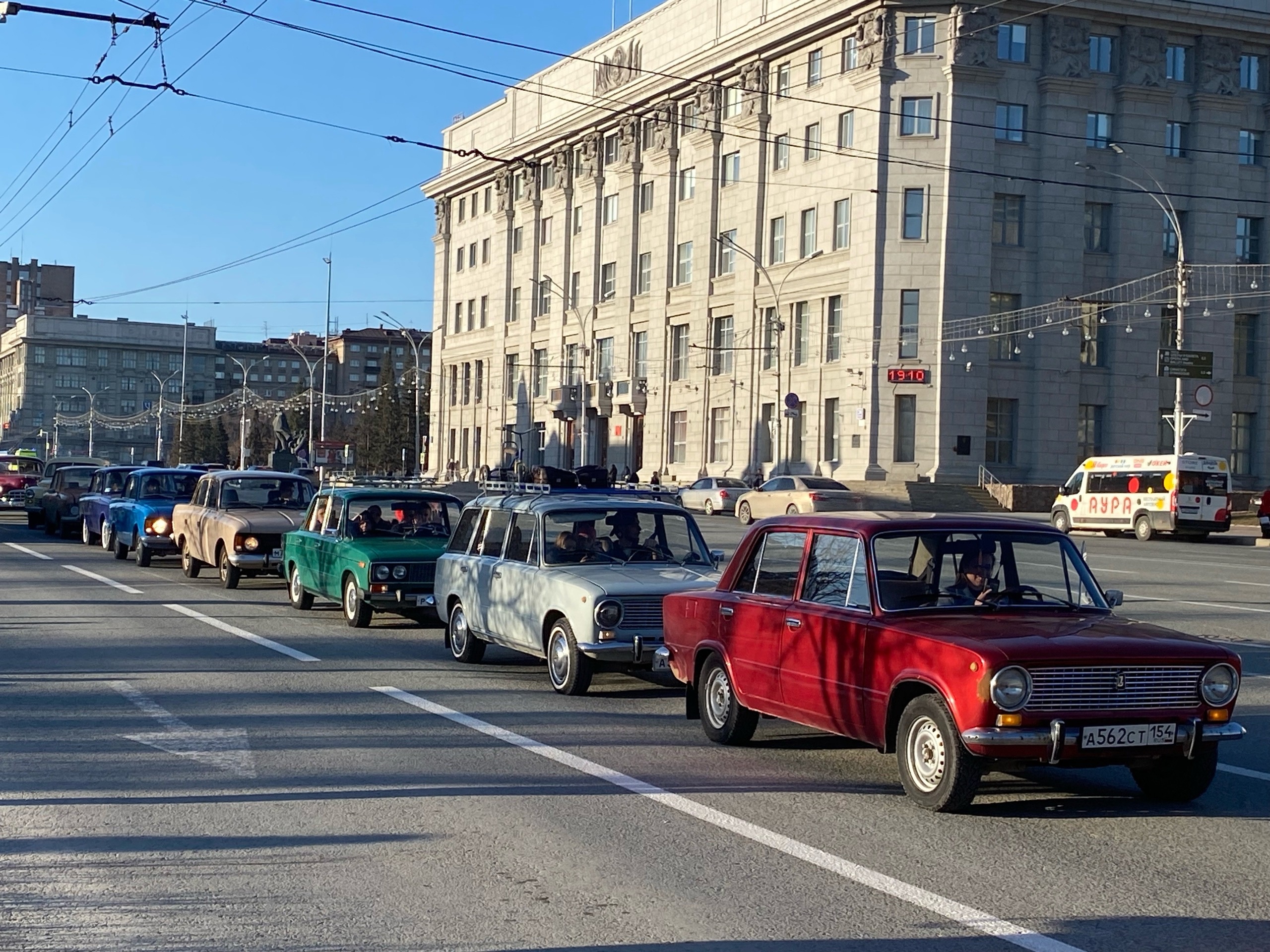 Вереница советских автомобилей проехала по Новосибирску.