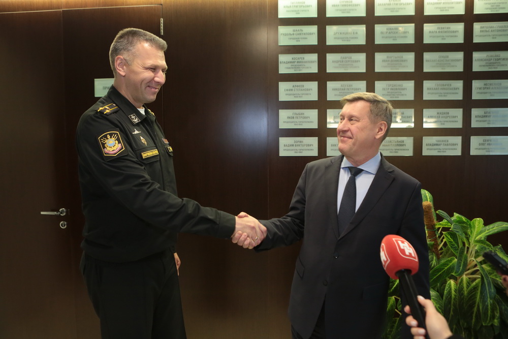 Мэр Анатолий Локоть встретился с командиром атомного подводного крейсера К-573 «Новосибирск», капитаном первого ранга Максимом Шпирко. Недавно он был награждён орденом Мужества.