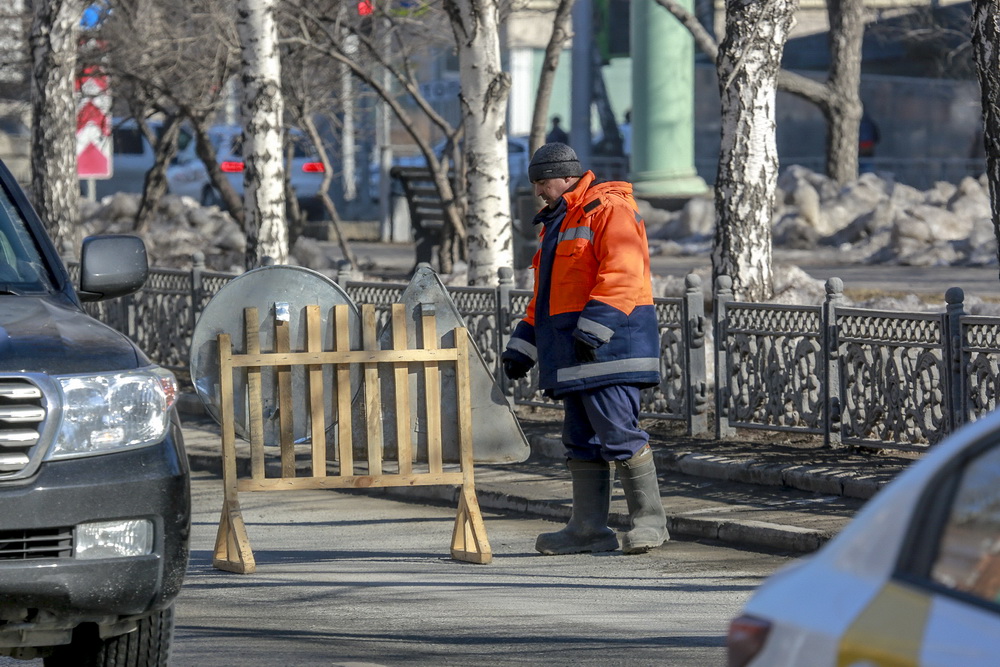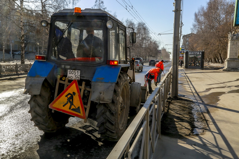 «По поручению мэра Анатолия Локтя дорожные службы наращивают выход летней уборочной техники. К концу недели обещают снег, но будем переоборудовать на лето технику, чтобы с начала следующей недели — к плюсовым температурам — выпуск летней техники возрос кратно», — сообщил начальник управления автомобильных дорог мэрии Сергей Эпов.