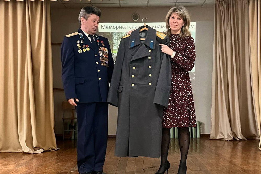 Ещё один подарок — парадное офицерское обмундирование — школьникам передал ветеран боевых действий Виталий Лосев. Советского образца шинель служила со своим хозяином в послевоенные годы в Чехословакии и на Дальнем Востоке.