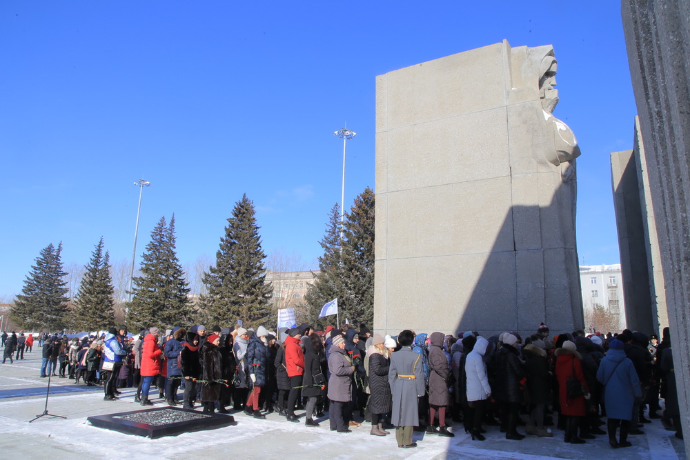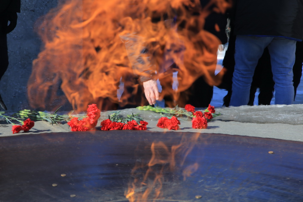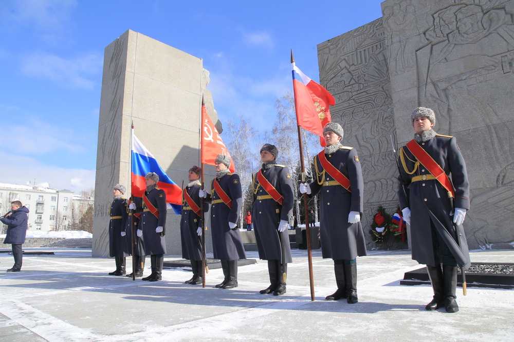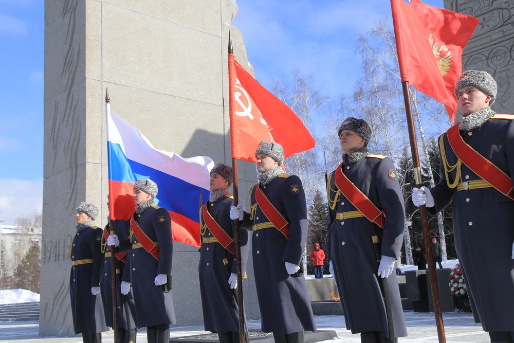 Копию Знамени Победы вынесли к Монументу Славы в Новосибирске