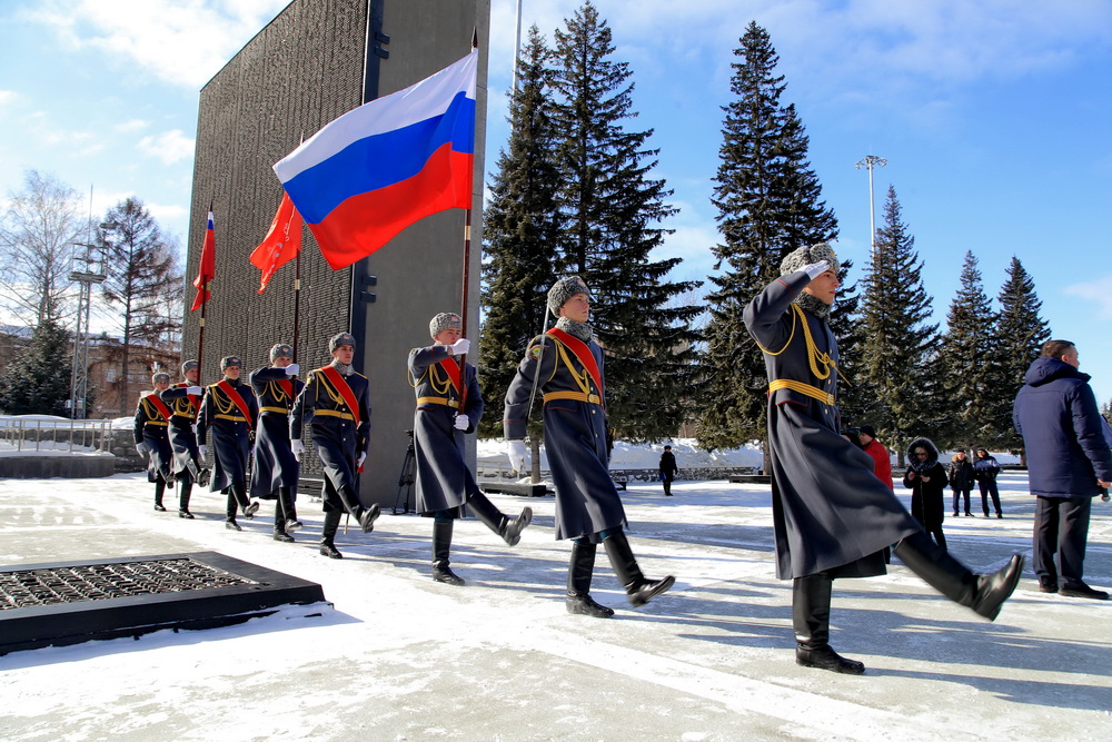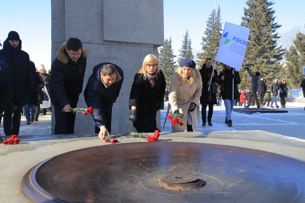 Из Владивостока в Новосибирск привезли копию Знамени Победы и флаг Росреестра. Сегодня наш город принял эстафету «Марафона Победы». Флаги вынесли к Монументу Славы курсанты Новосибирского военного командного училища.