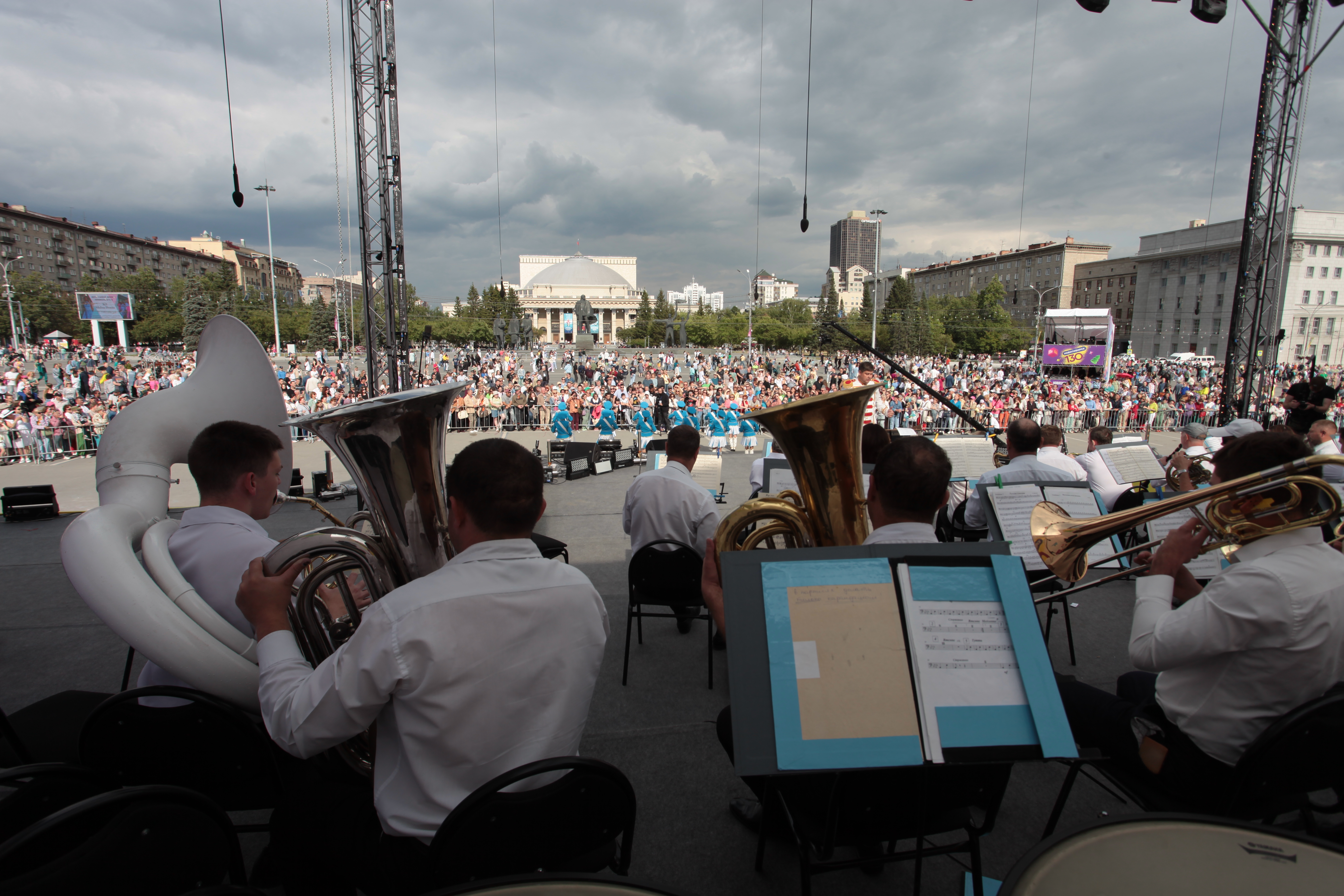 На площади Ленина выступил сводный хор из более чем 1130 новосибирцев, прошли танцевальные мастер-классы от звёзд, а завершит программу грандиозное шоу с участием духовых оркестров со всей страны и артистов нашего города.